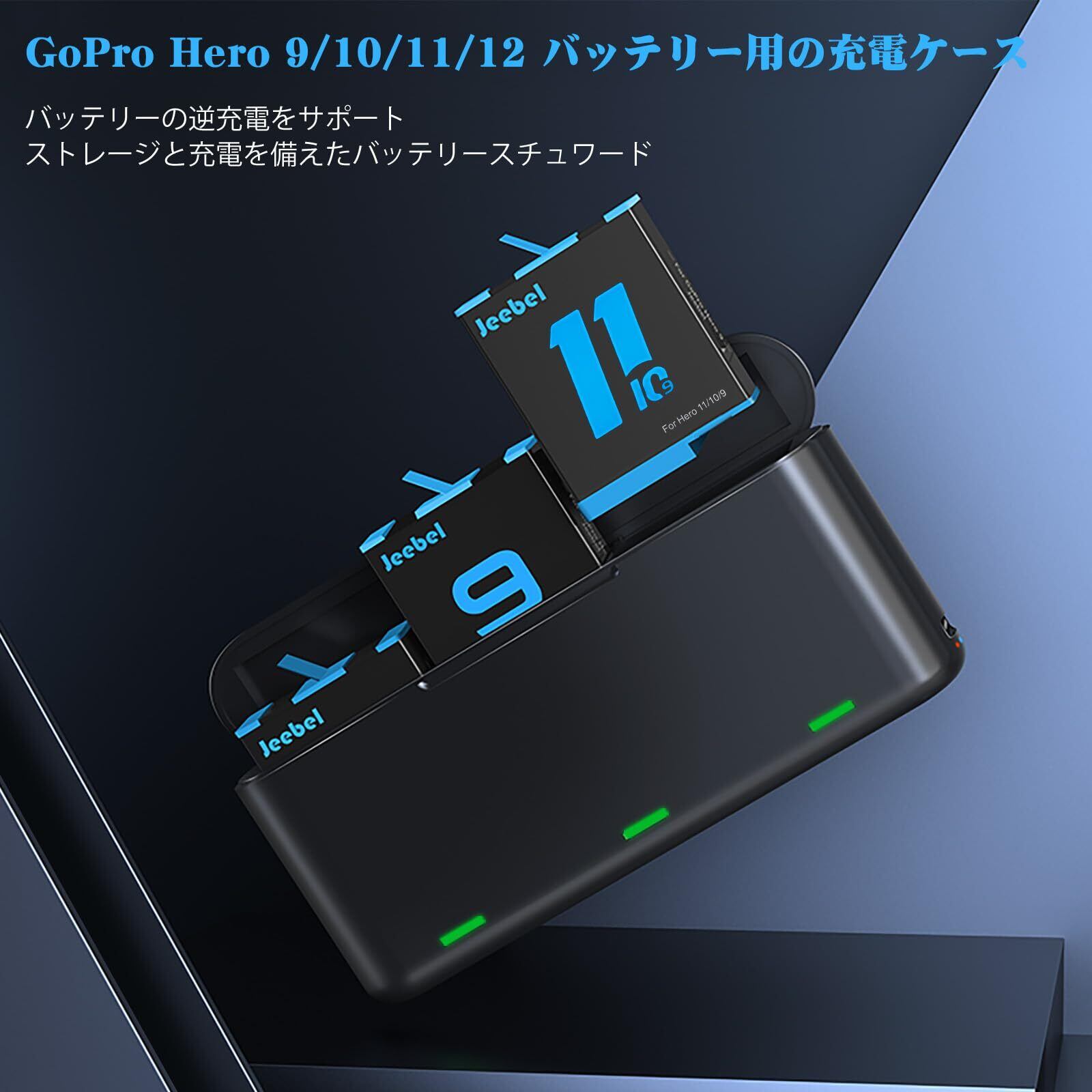 Gopro Hero9/Hero10/Hero11/Hero12 バッテリー用充電器 逆充電をサポートゴープロ バッテリーチャージャー 3チャンネル 収納ボックス式 USB 同時充電可能 Type-Cケーブル付き