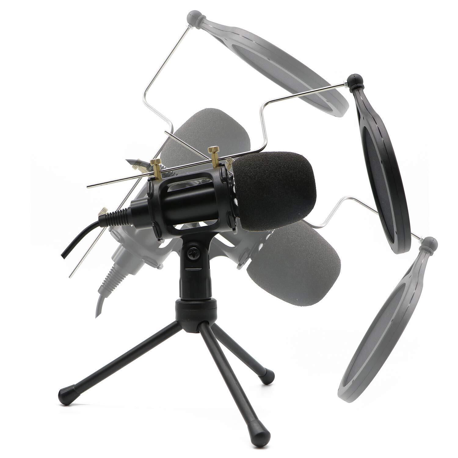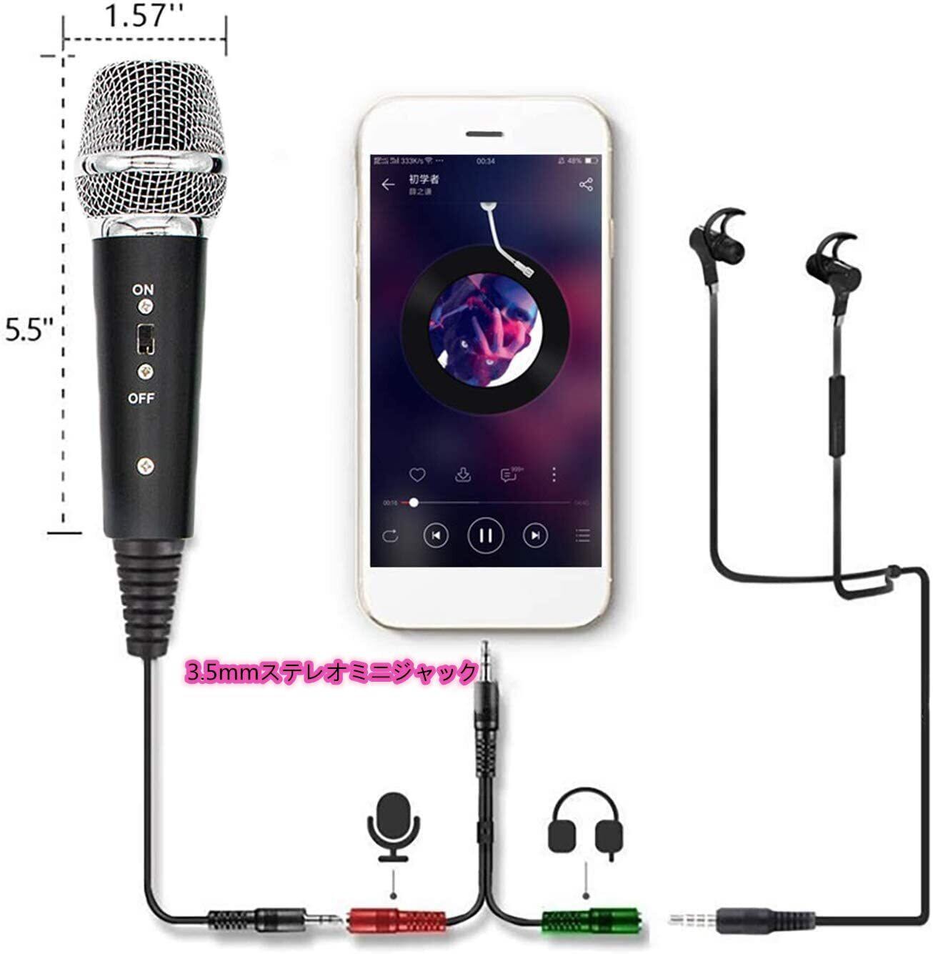 マイクコンデンサマイク スマホ マイマイク ゲーム実況 スタンドマイク スマホマイク マイクロフォン 小型 集音マイク 全指向性 生放送 集音 録音 会議用 カラオケ機器 (ブラック)