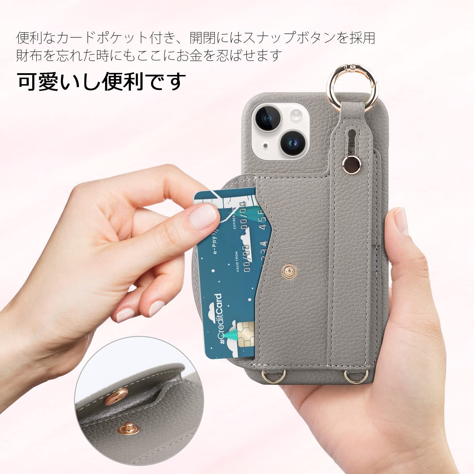 iPhone 14 対応 スマホ ケース iphone14 手帳型カバー 肩掛け 首かけ 斜めがけ ショルダー ケース アイホン 14 財布型 ケース 保護フィルムプレゼント あいふぉん14 PU皮革カバー 可愛い リング付き 背面 カード収納 アイフォン 14 縄掛け ケース あいほん14 女性 携帯 カバー 片手操作 スタンド機能 ハンドヘルド機能 落ち着いた 落下防止 薄型軽量 耐久性 取り外し可能 耐汚れ ノート型 (iPhone14, 灰)