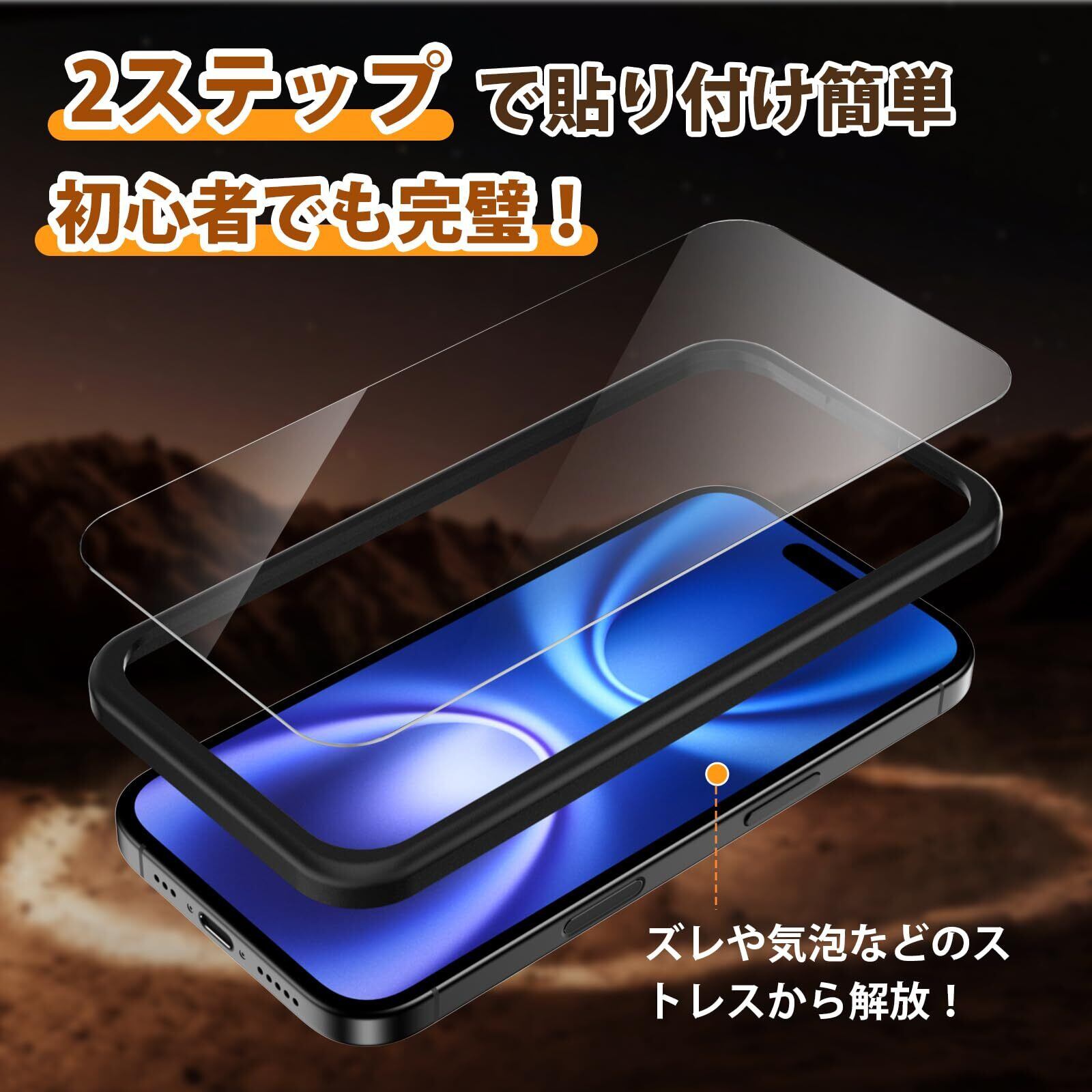 【初心者でも完璧!貼り付け簡単】2ステップで、初心者でも完璧に貼り付け可能!画面に置くだけでキレイに貼れ、気泡も抜けやすい。CNC彫刻加工を採用したガイド枠はiPhone16の画面にぴったりフィットし、ズレなどのストレスから解放!