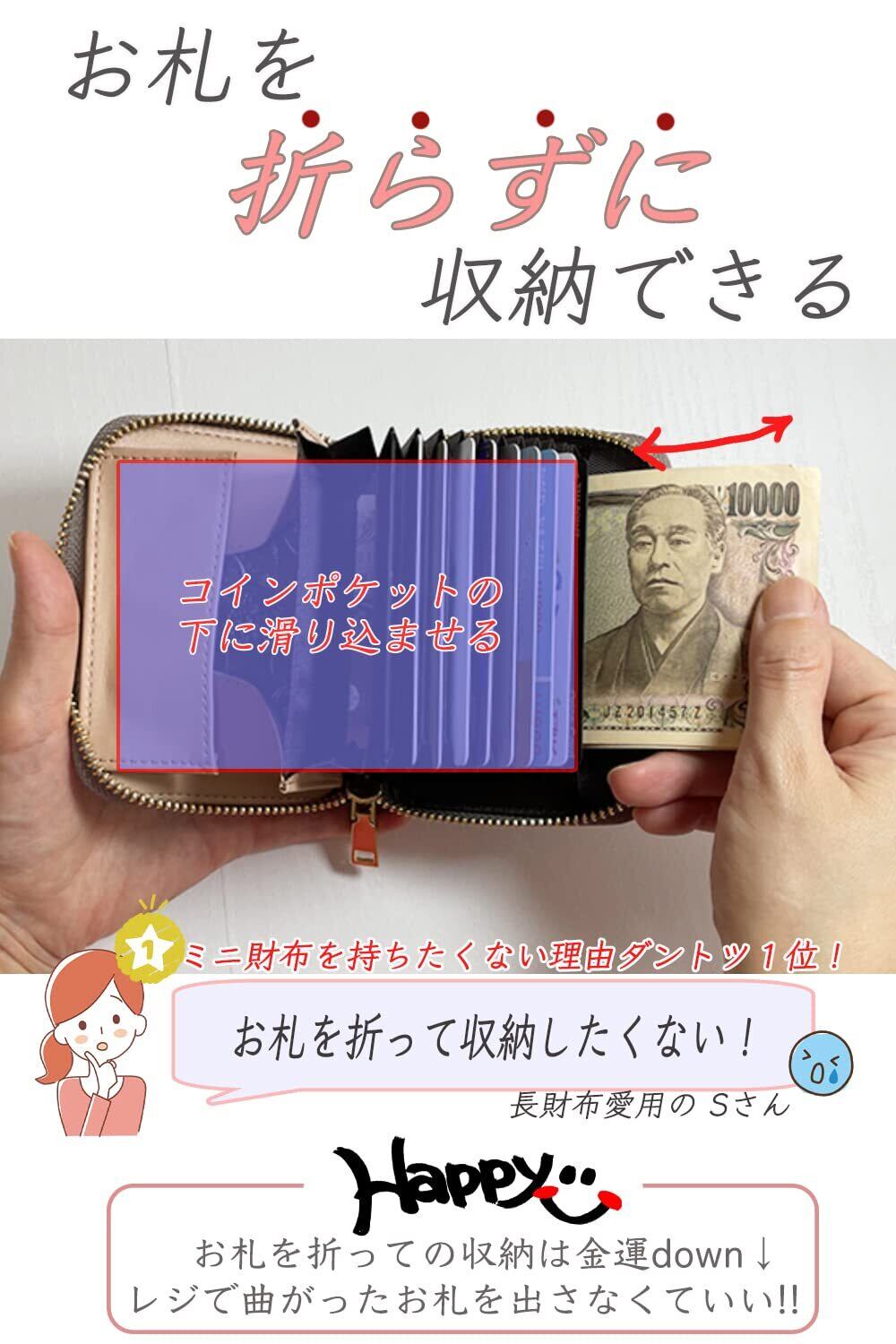 【お札が折れない】◎小銭の下のポケットへお札を滑り込ませる構造にすることで、お札が折れません◎ミニ財布特有の‘お札が折れてしまって会計の時に嫌’な人に是非おすすめです。