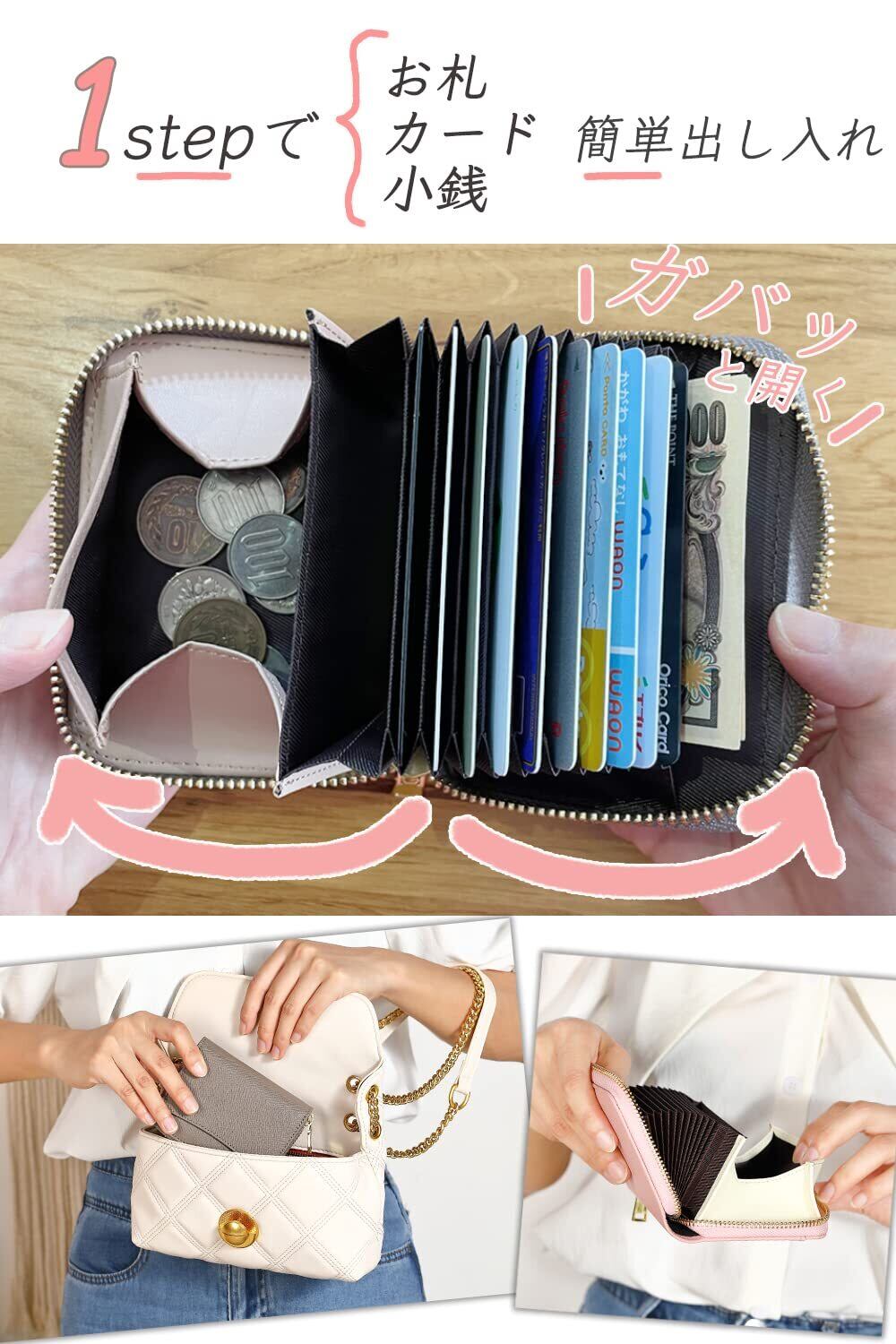【One アクションで支払いを】お札、小銭、カードが一つのファスナーを開けるワンアクションで全て行えるミニ財布です
