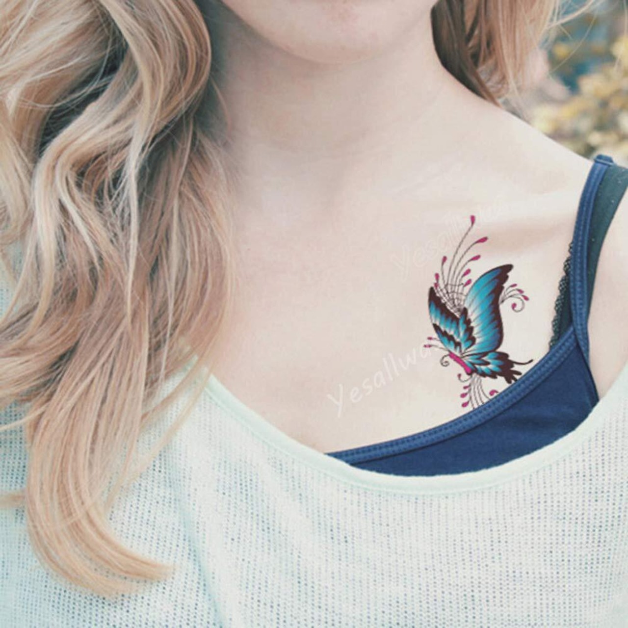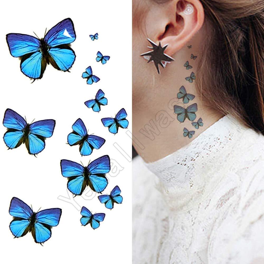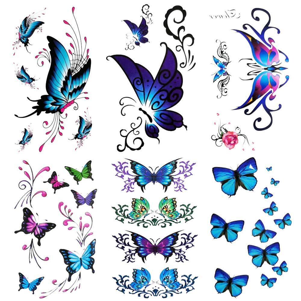 Yesallwas タトゥーシール 蝶 青 長持ち 6枚セット 入れ墨シール 蝶々 タトゥー ブルー 刺青シール バタフライ タトゥーステッカー ボディーシール 防水 (蝶))