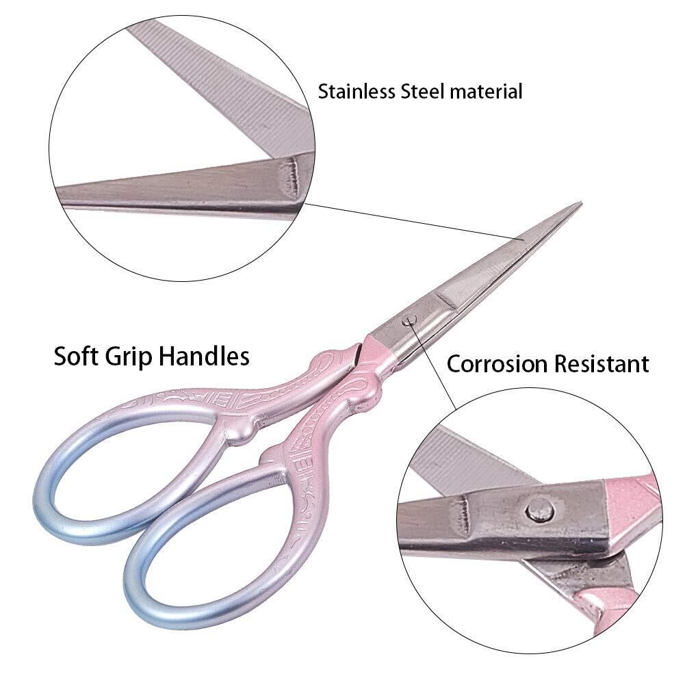 SUNNYCLUE 2本 ミシンハサミ 刺繍 はさみ 刺繍ミシンはさみ ヴィンテージ ハサミ アンティーク ハサミ ハンドメイド 手芸用 ハサミ 裁縫 はさみ 縫製 洋裁 針仕事 紙はさみ ハサミ・カッティングツール 小さい 鋭いチタン刃 はさみ セット ステンレス鋼 工芸 糸切 布 紙 精密 グラデーション DIY手作り