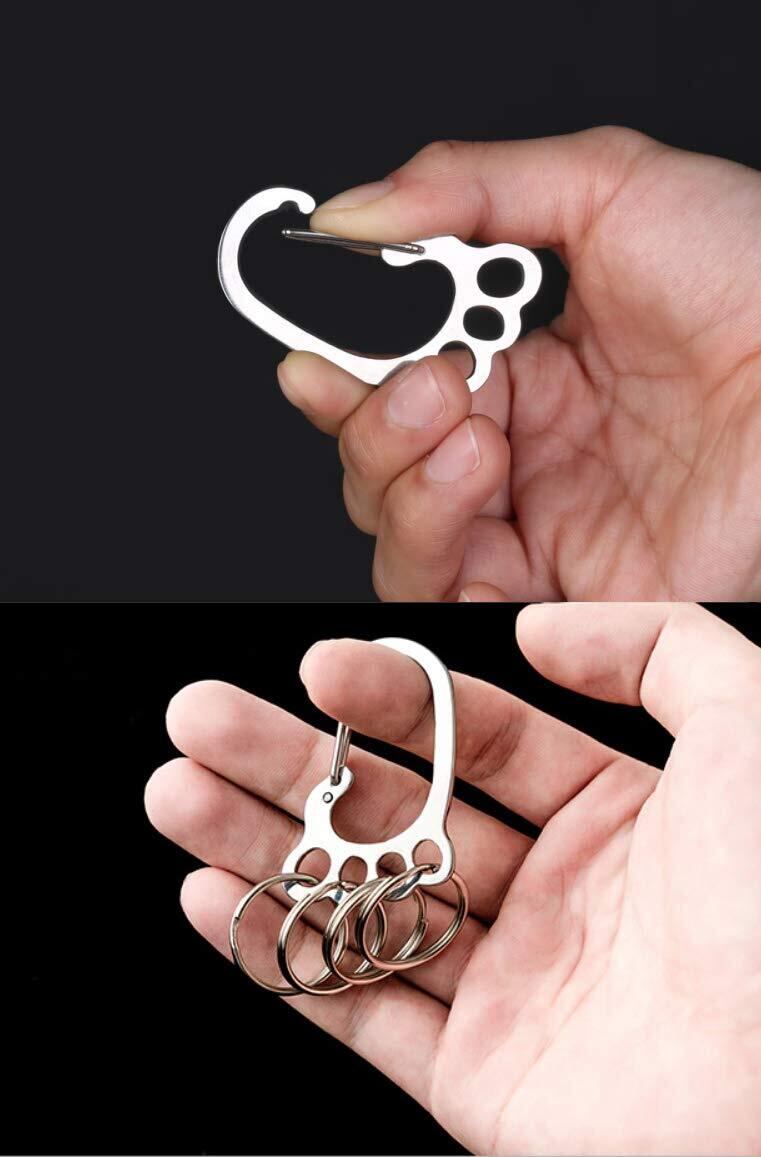 [ほうねん堂] カラビナ キーホルダー 足型 2個セット ステンレス製 シルバー & シルバー