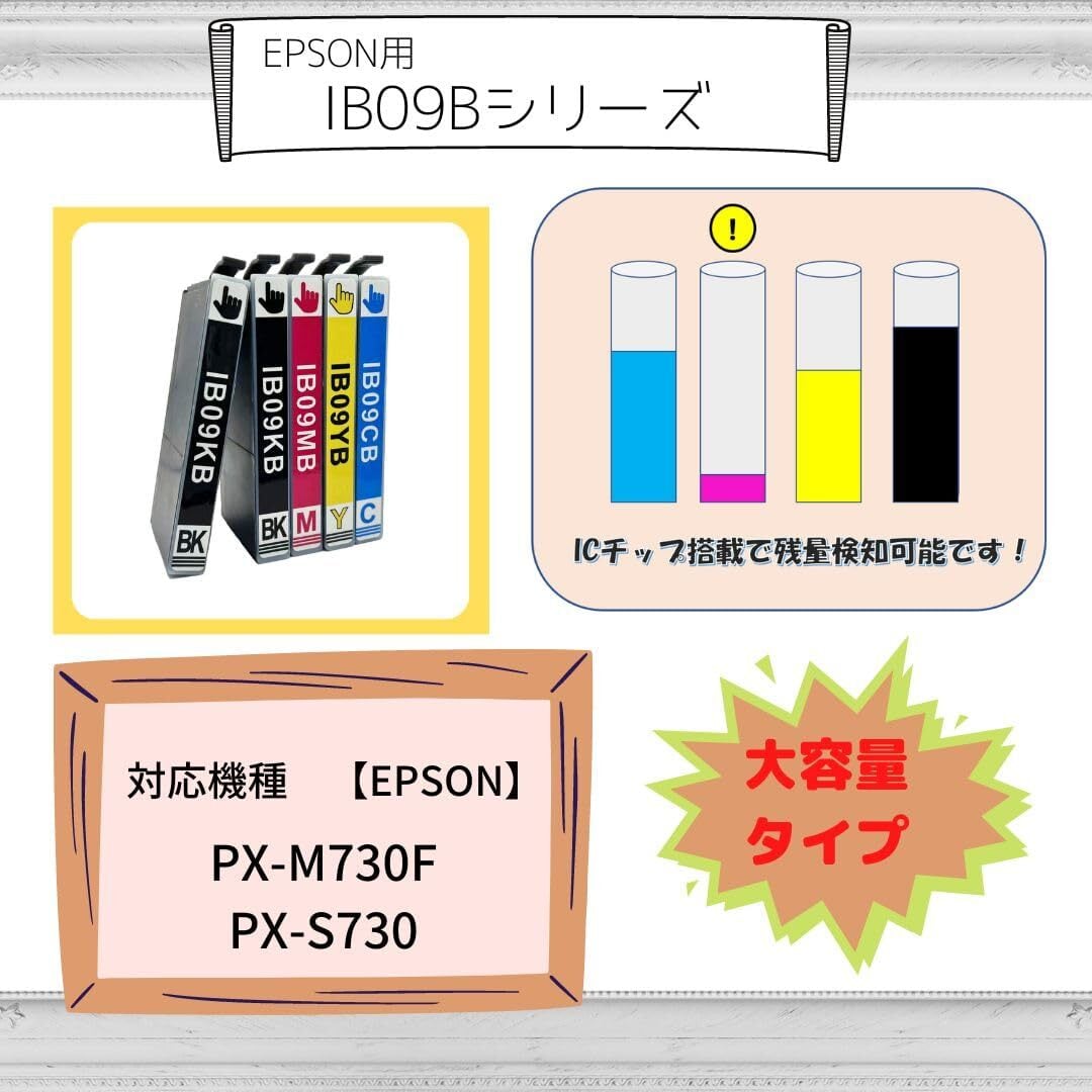 IB09CL4B + IB09KB(ブラック) 4色5本セット(黒2本) EPSON用 エプソン 互換インク 大容量 インクカートリッジ 対応機種:PX-M730F PX-S730 ICチップ搭載