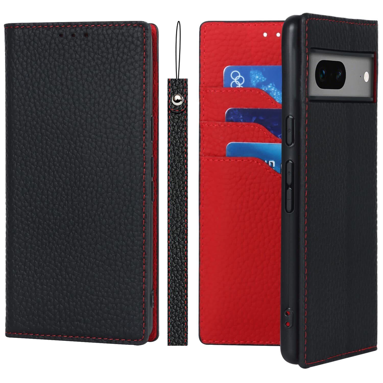 Pixel 7A ケース手帳型 Google Pixel 7A ケース Pelanty 牛革製品 本革レザー 財布型カバー Pixel7a カード収納 スタンド機能 内蔵マグネット 手作り柔らかい グーグル ピクセル7a 携帯カバー ストラップ付 ヘッドフォンケーブル 耐衝撃 [6色選択] ブラック