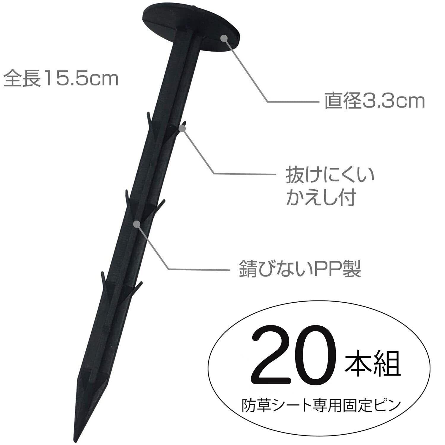 アストロ 防草シート 固定ピン 20本組 抜けにくい返し(トゲ)付き ポリプロピレン製なので錆びない 固定用 おさえピン ペグ 杭 釘 雑草対策 庭 家庭菜園 農業 園芸 ガーデニング ブラック 602-49