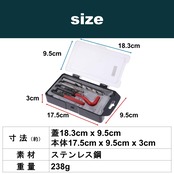 サイズ(約):蓋18.3cm x 9.5cm/本体17.5cm x 9.5cm x 3cm
