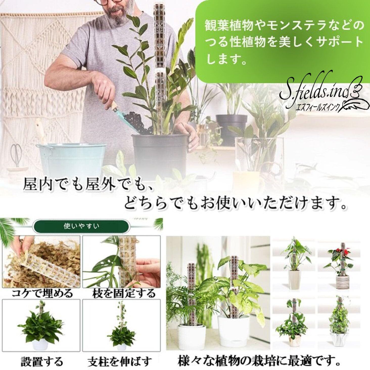 モンステラ、ポトス、トマトだけでなく、マネーツリー、ピートモス、ミズゴケ、ツタなどの着生植物やつる性の観葉植物の栽培にお使いいただけます。屋内、屋外使用可。