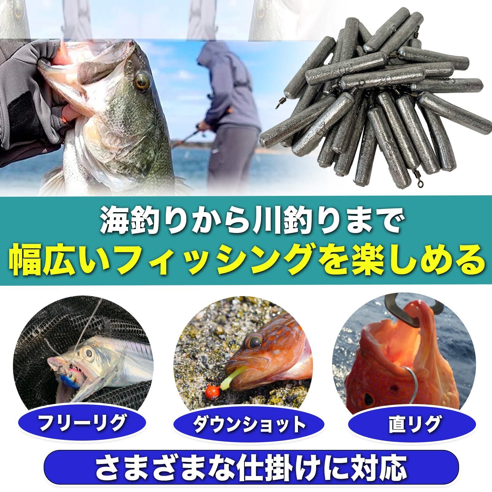 【高精度なキャスティング】このフリーリグシンカーは、釣りの際に安定したキャスティングを実現します。これにより、狙ったポイントに正確にルアーを届けることができ、釣果を向上させます。初心者からプロまで、誰でも簡単に使いこなせる設計です。