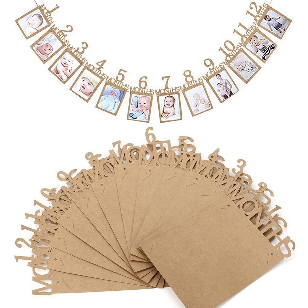 誕生日 写真 ガーランド フォトフレーム 飾り付け 1歳 12ヶ月 バースディ パーティー お祝い 装飾 壁掛け 写真フレーム 写真立て 記念日 赤ちゃん 結婚 ひも付き (茶色)