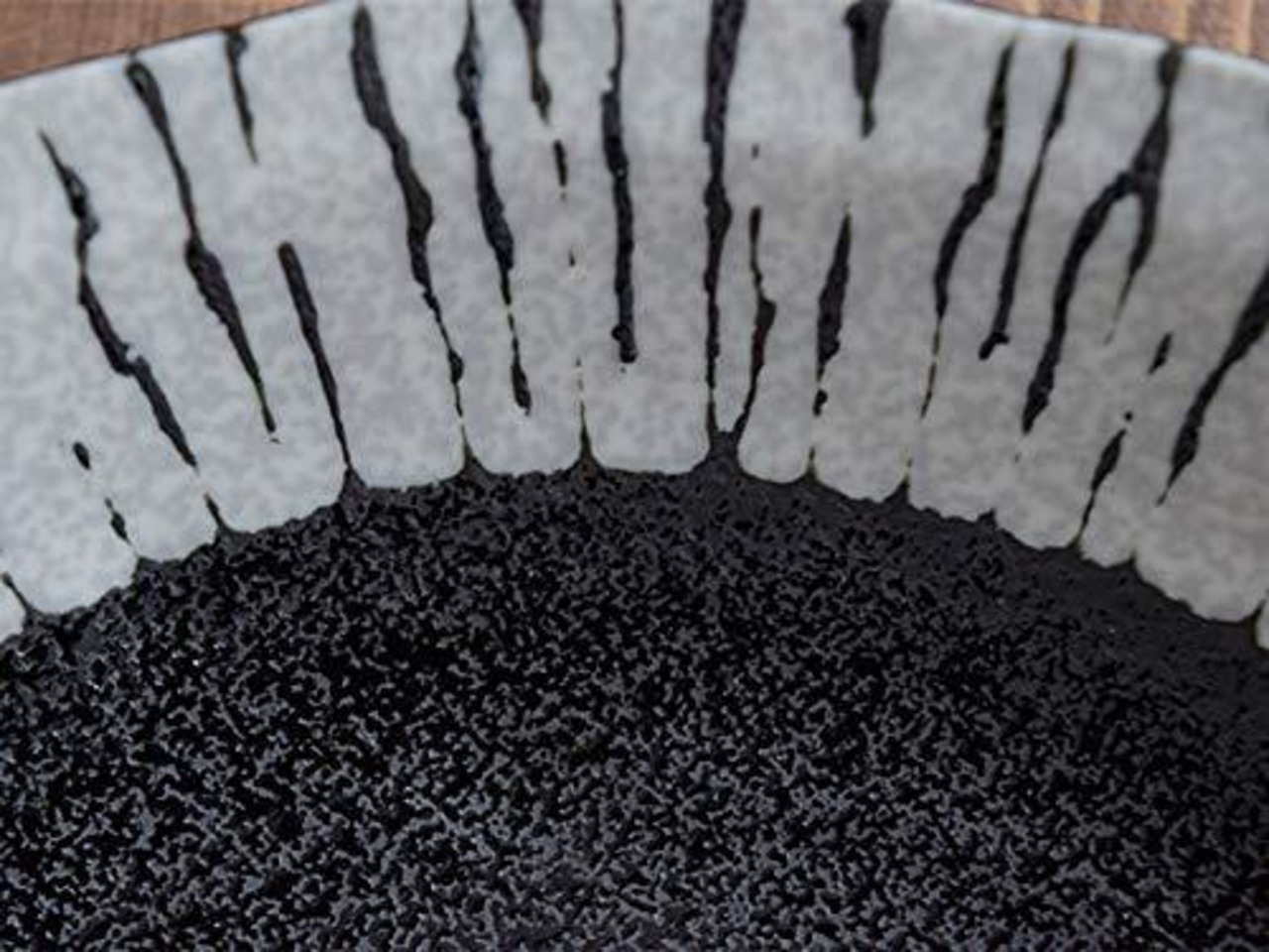 「こちらはEAST table(イーストテーブル)(旧:テーブルウェアイースト)のオリジナル商品です。」ゼブラ柄のようなモノトーンがかっこいい食器。和食、洋食問わず使えて、シックでモダンなテーブルコーディネートにも合わせやすいデザインです。