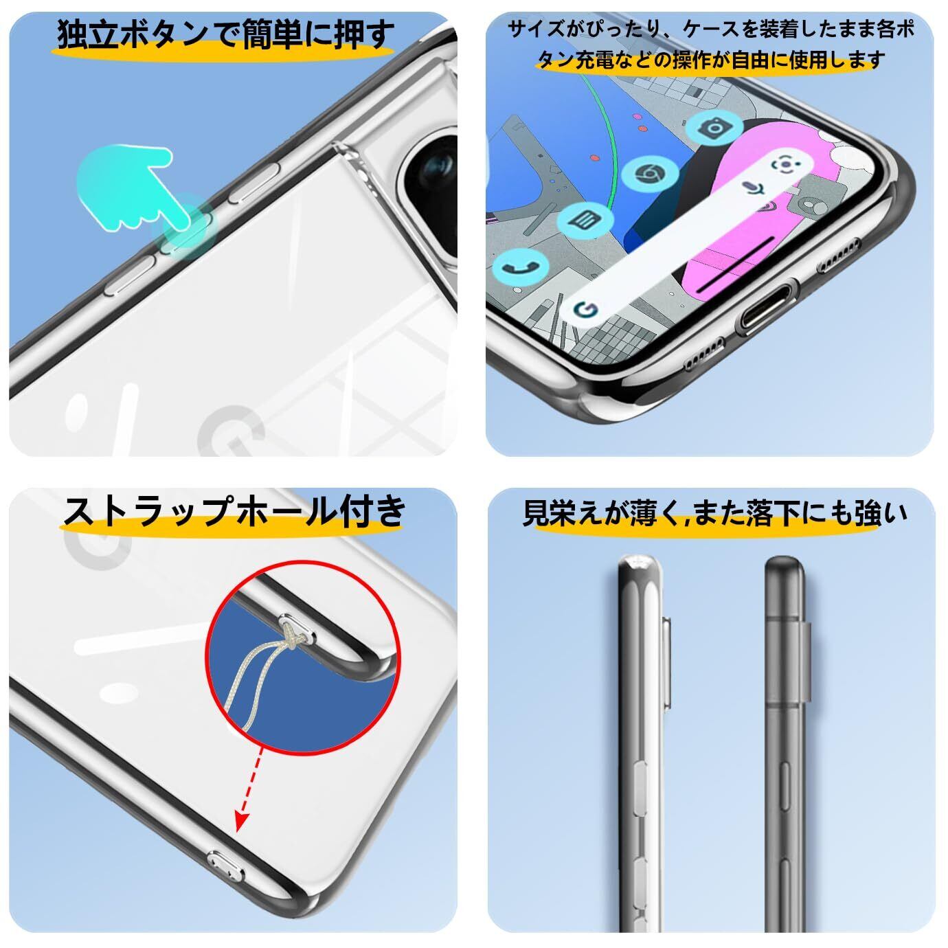 Google Pixel 8a ケース クリア 耐衝撃 ピクセル 8A カバー 透明 可愛い ワイヤレス充電 薄型 柔らかい 軽量 TPU 黄変防止 ファッション ソフトケース 人気 保護カバー(シルバー)