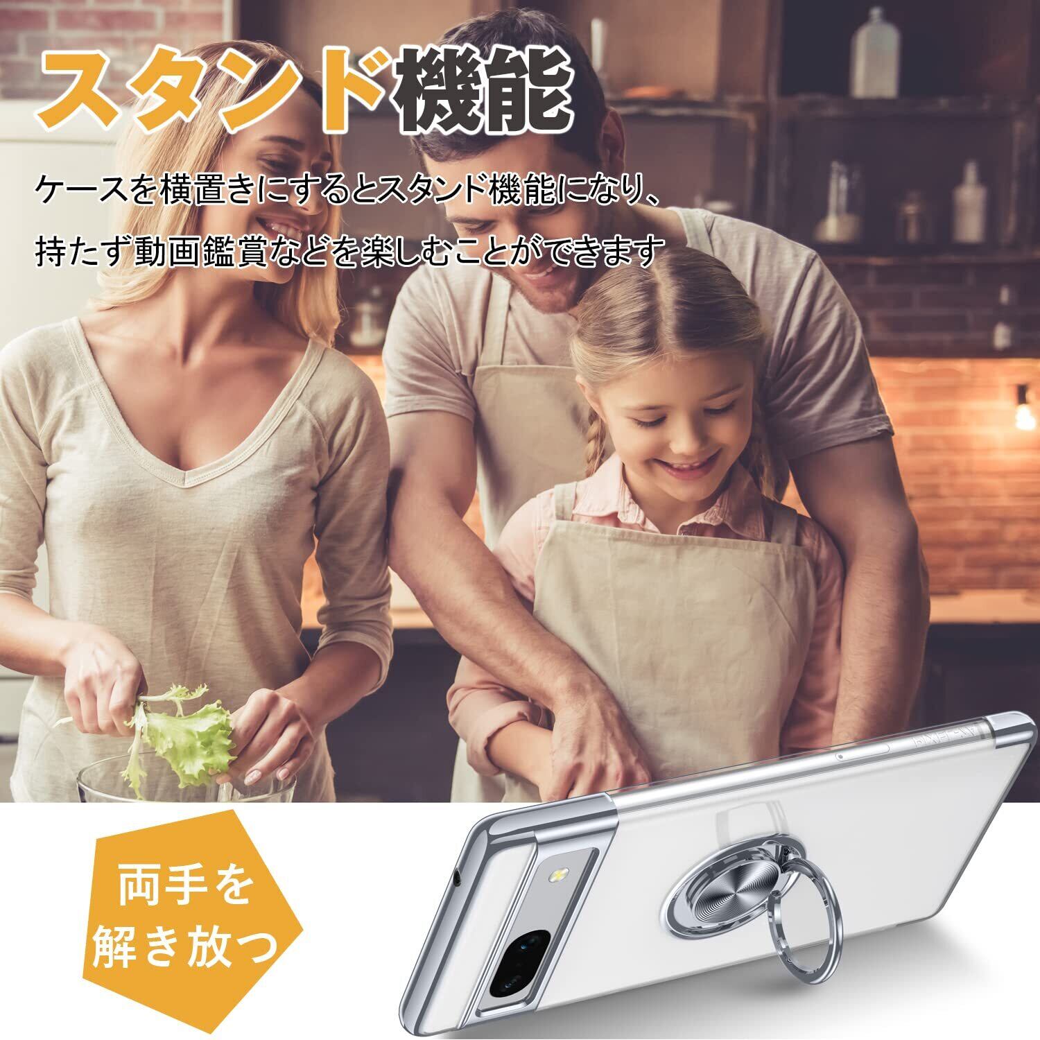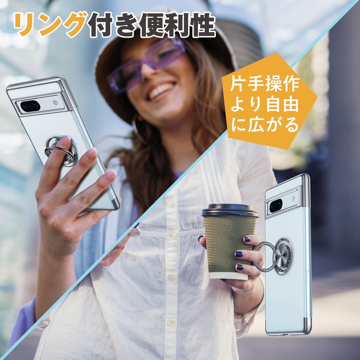 OURJOY Google Pixel 7a 用 ケース クリア リング付き ピクセル 7a カバー 透明 おしゃれ OURJOY スマホケース メッキ加工 ソフトケース 耐衝撃 軽量 薄型 ストラップホール付き スタンド機能 車載ホルダー対応 携帯ケース・ブラック