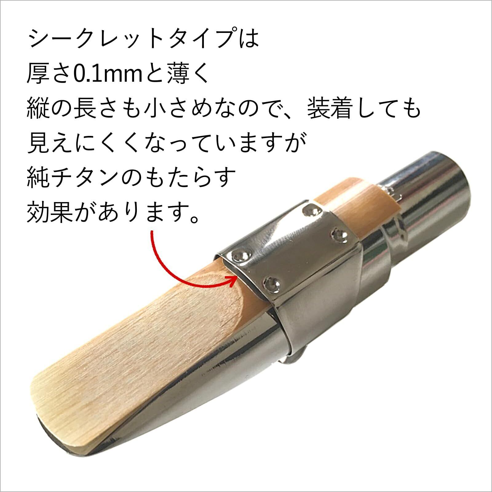 【音の特徴】鳴りがスムーズで、音の抜けが良くなります。音に張りが出て、パワーアップします。リガチャーの下に収まる大きさのシークレットタイプで、装着しているのが見えにくくなっています。わずか0.1mmでもチタンの特性を発揮します。