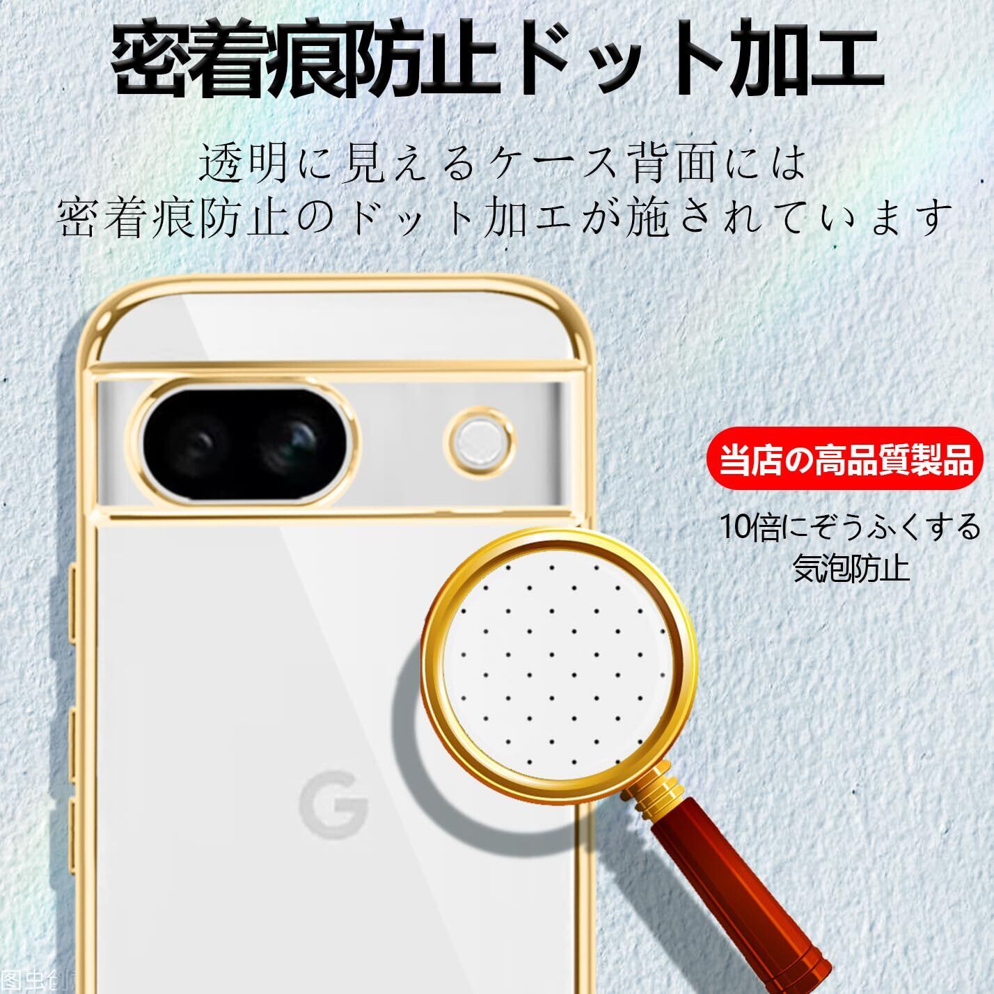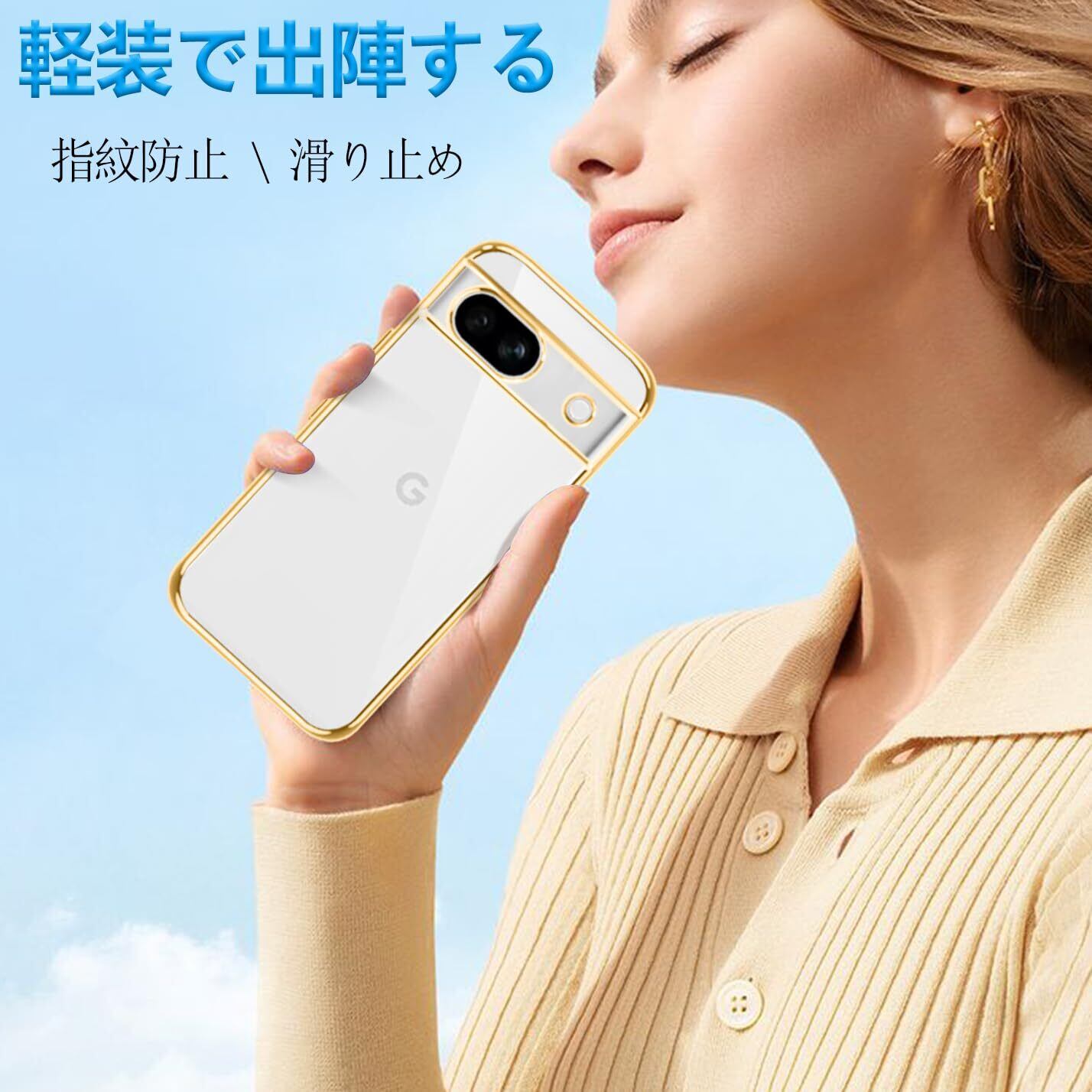 Google Pixel8a ケース クリア TPU 透明 薄型 軽量 グーグル ピクセル 8a スマホケース 耐衝撃 メッキ加工 ソフト 人気 ワイヤレス充電対応 (ゴールド)
