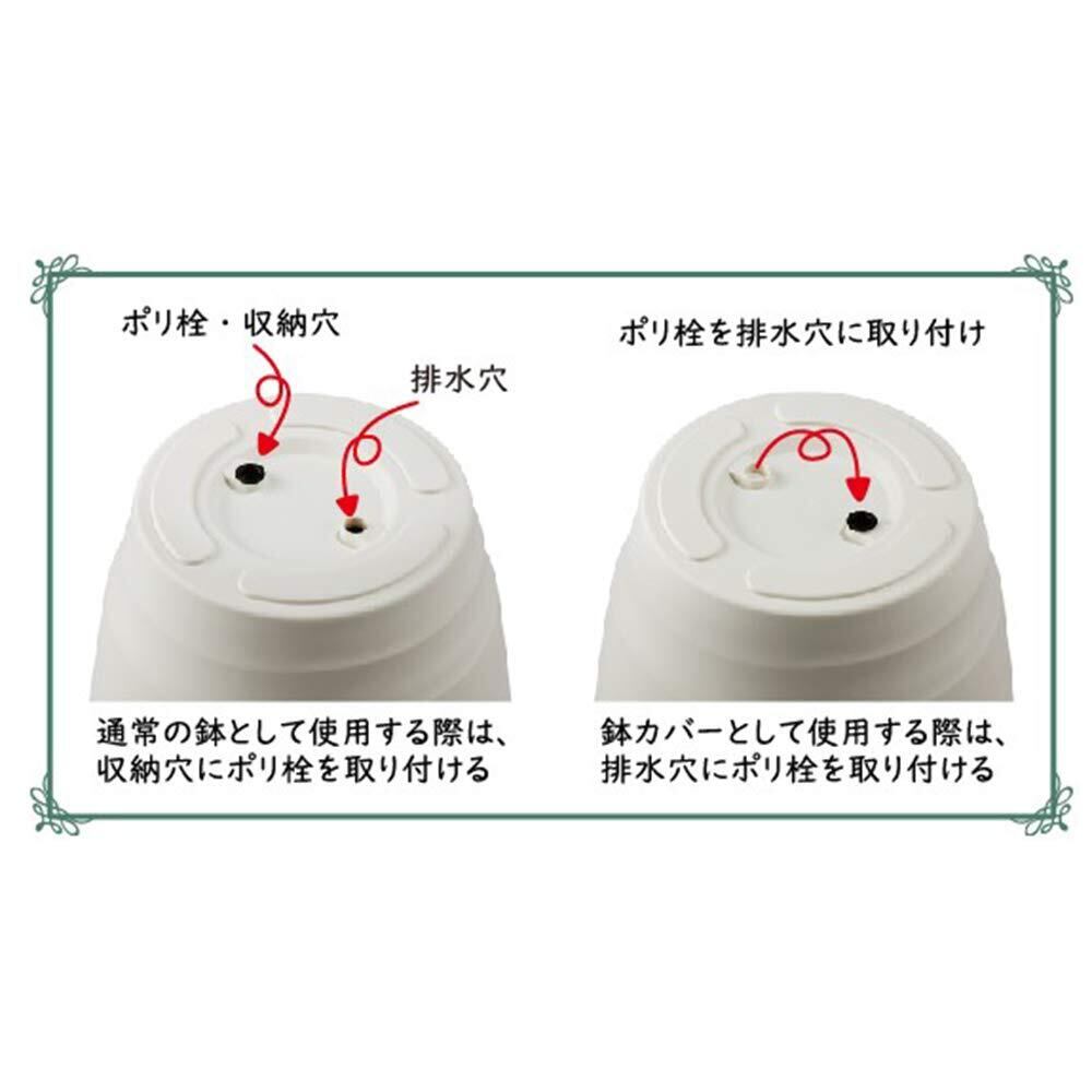・鉢カバーとして使用する場合はポリ栓で穴をふさげ、また通常の鉢としても使用可能