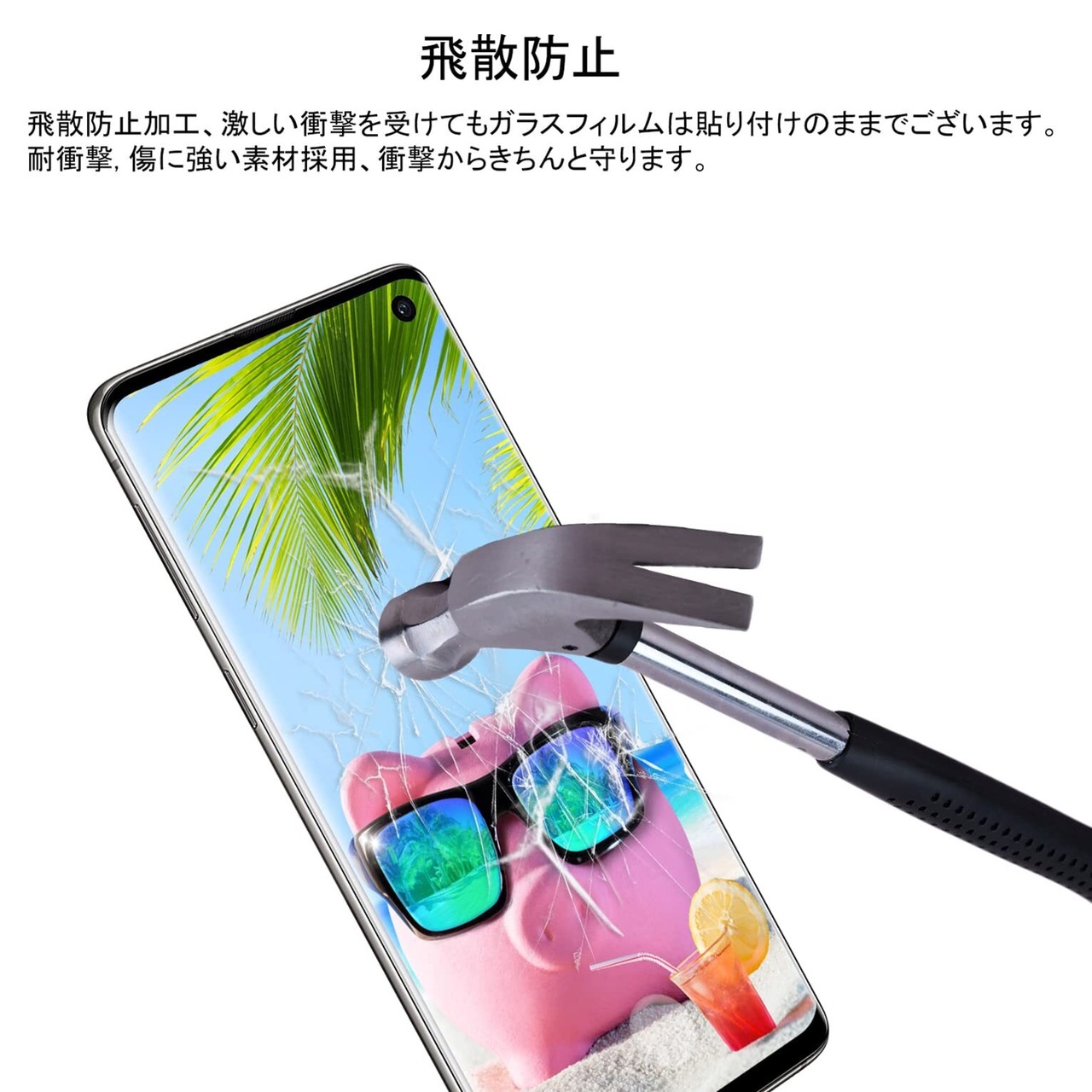 Galaxy S10 用 ガラスフィルム 強化ガラス 指紋認証対応可能 3D曲面 湾曲まで覆える【2枚セット】 Samsung Galaxy S10 用 フィルム 硬度9H 衝撃吸収 高透過率 全面吸着 指紋防止 気泡ゼロ 干渉しない 飛散防止 ギャラクシーS10 用 保護フィルム( 6.1インチ )