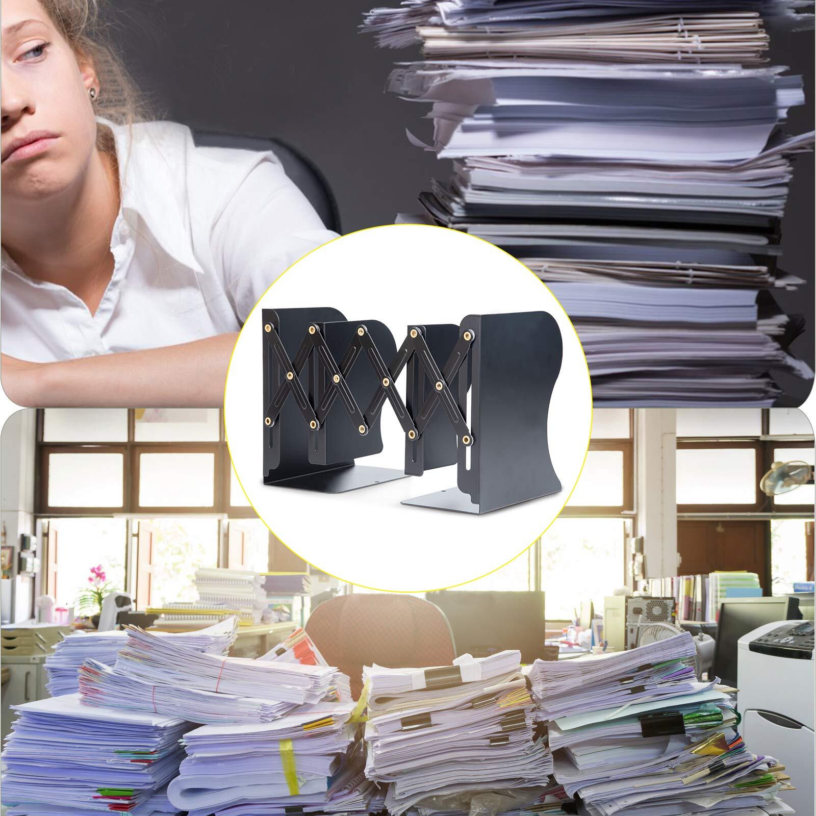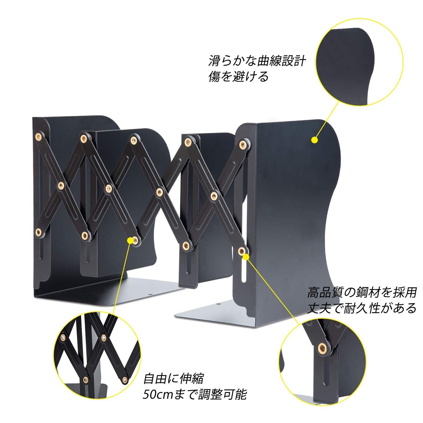 ALIOBC 本立て 伸縮自在 ブックエンド 倒れない 金属製 卓上本棚 仕切りスタンド 雑誌 書類 新聞ファイル ひきこみ式の棚 事務用品 文房具 学習 書斎 子供部屋 オフィス 多機能 おしゃれ ブラック