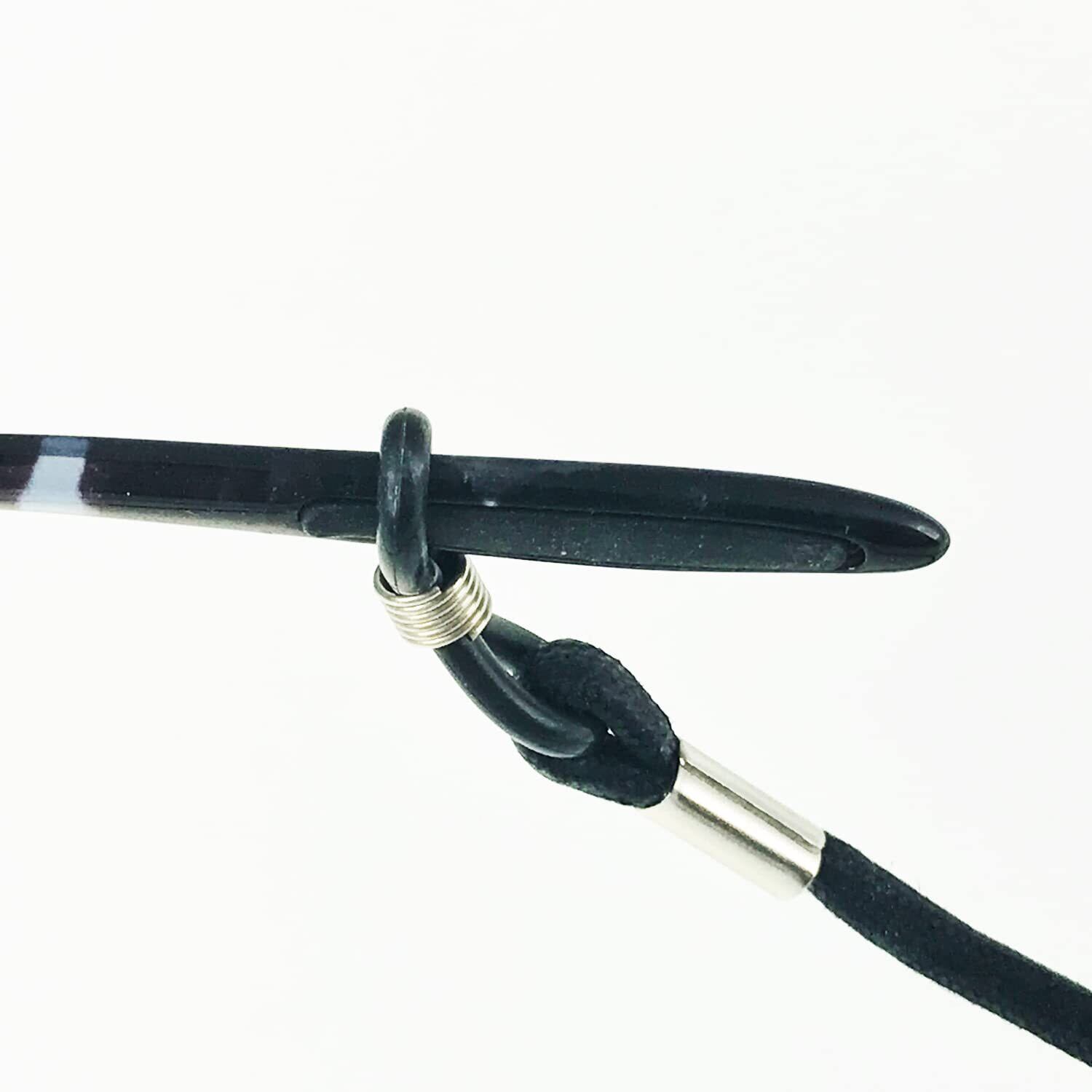 SWANSサングラス用のストラップ。サングラスを外した時に首からかけられるため紛失防止になります。取り付けはシリコンゴムのリングなので、通常(8㎜程度の太さまで)のサングラステンプルであれば取り付け可能です。