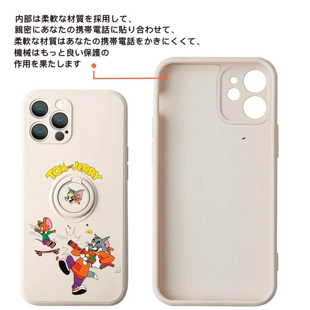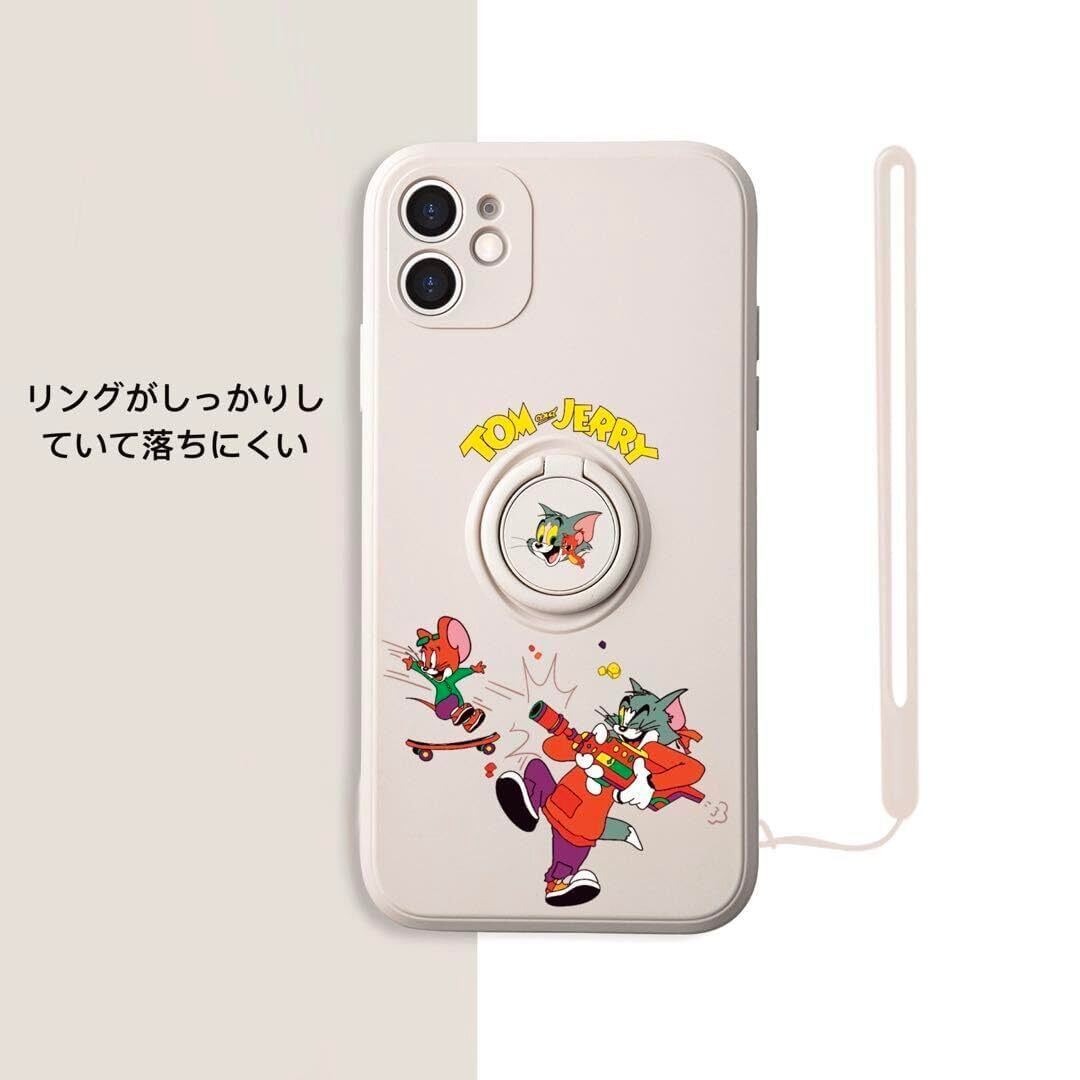 iPhone 16Pro Maxケース リング付きスマホケース ストラップ付き スマホカバー トムとジェリー キャラクター シリコン 落下防止 ストライプ 耐衝撃 防塵 割れない おしゃれ かわいい おもしろ クリスマス プレゼント スマホカバー (白, iPhone 16Pro Max)