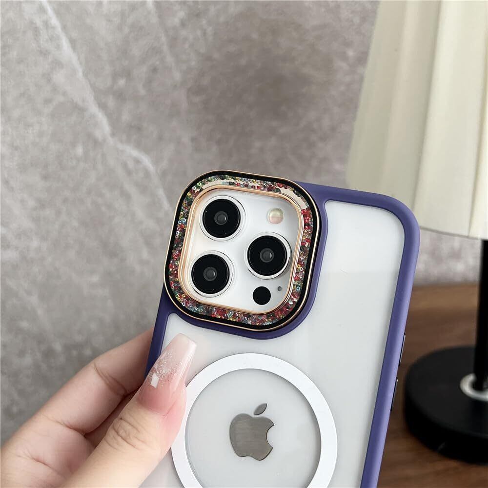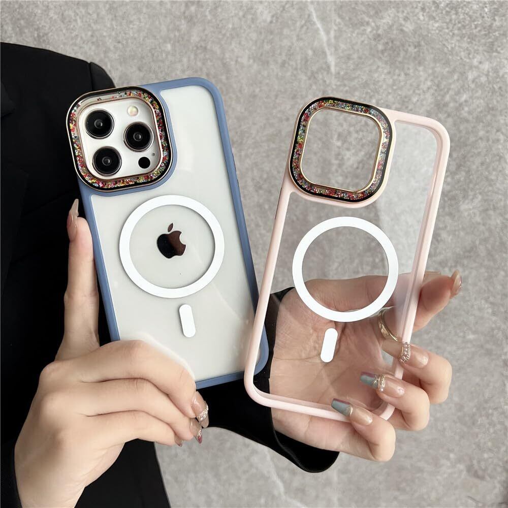 iPhone15 Pro Max ケース Magsafe対応 透明 クリア ストラップホール付き レディース 女性 可愛い デコ アイフォン15 Pro Max カバー 流れるパール お洒落 (15ProMax, ローズ)