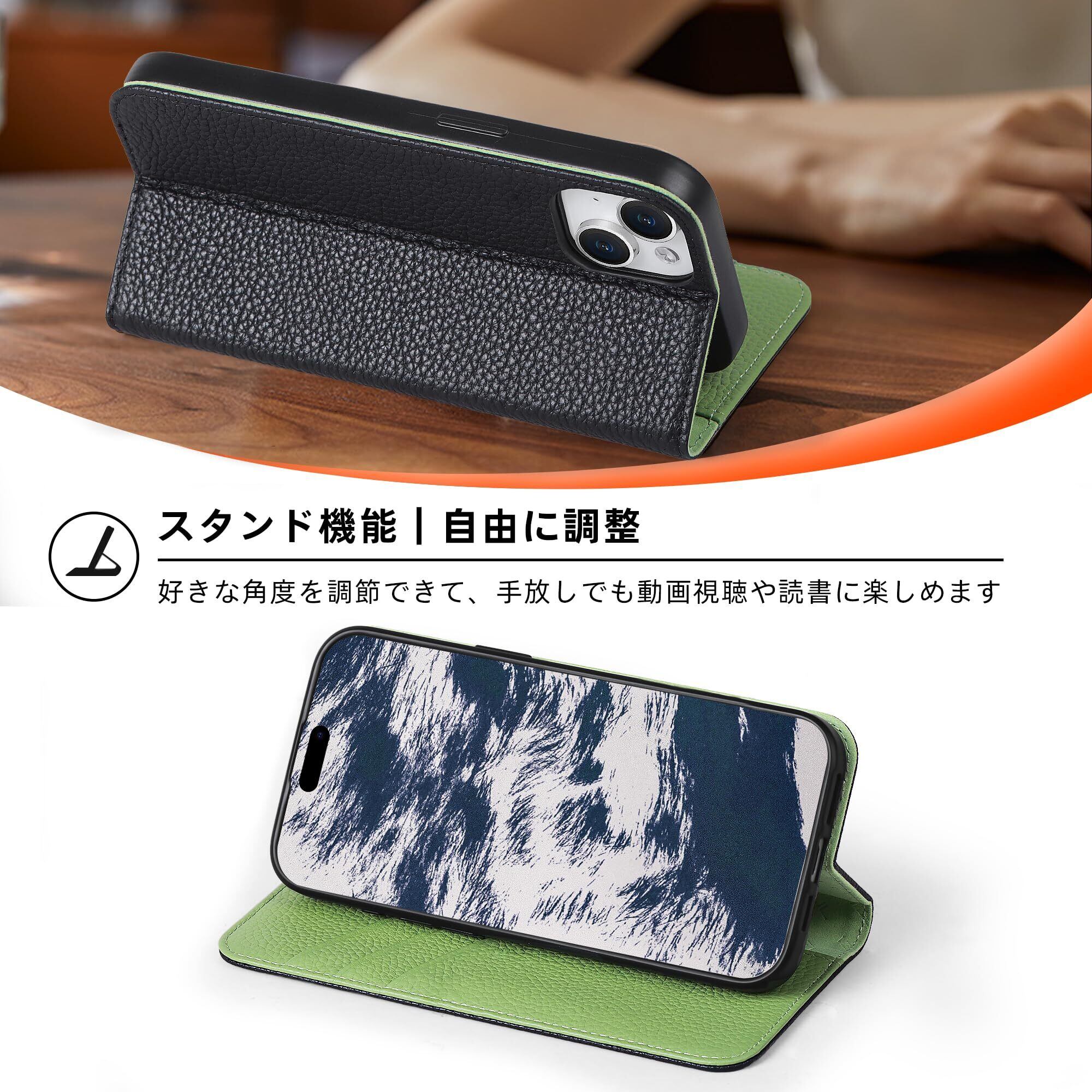 VISOUL iPhone14 ケース 手帳型 本革 アイフォン14 ケース 手帳型 本革 レザー スマホケース iPhone 14 手帳ケース 柔軟なTPU素材 カード収納 携帯ケース 全面保護 マグネット 横置きスタンド アイフォン14 手帳 対応 6.1インチ iphone 14 緑