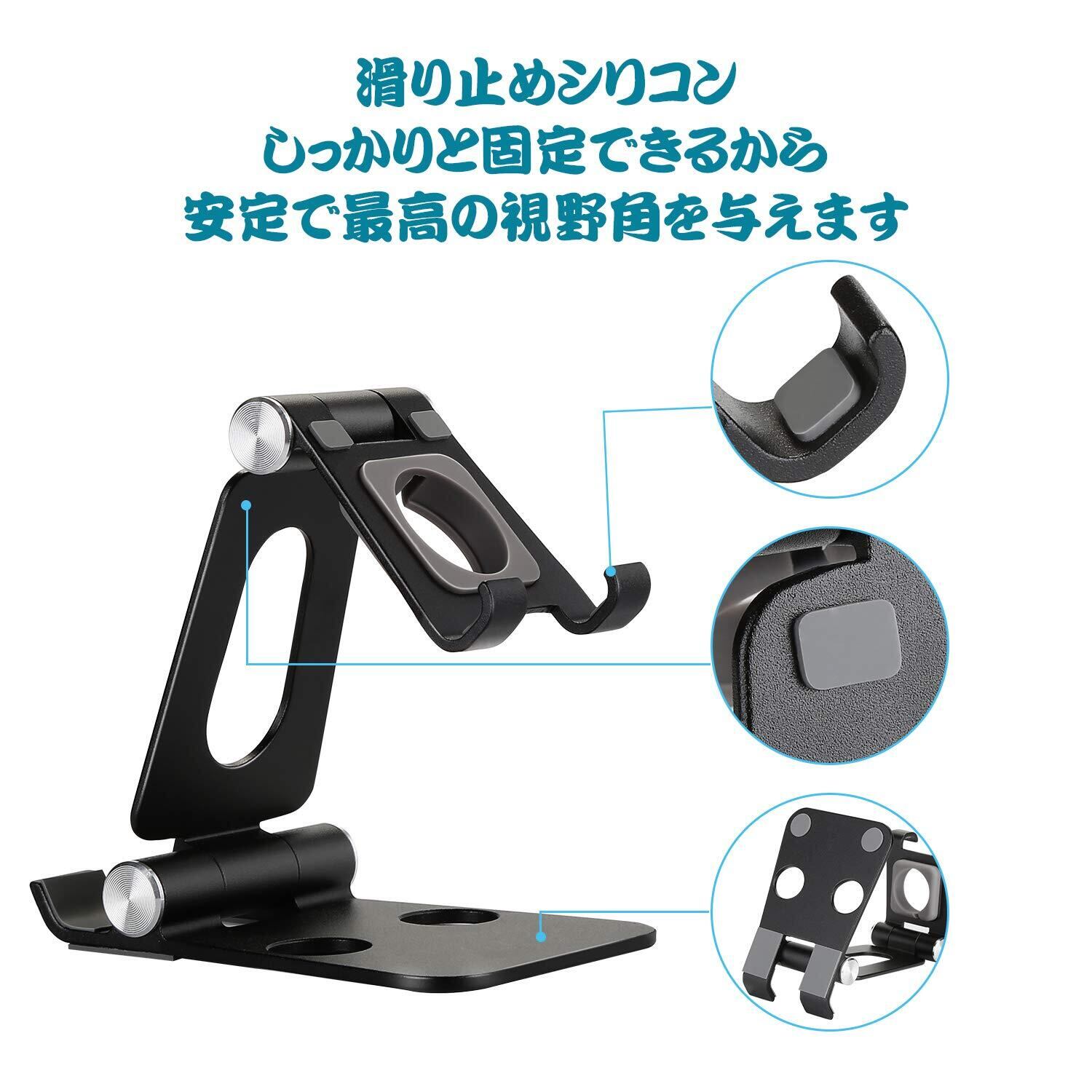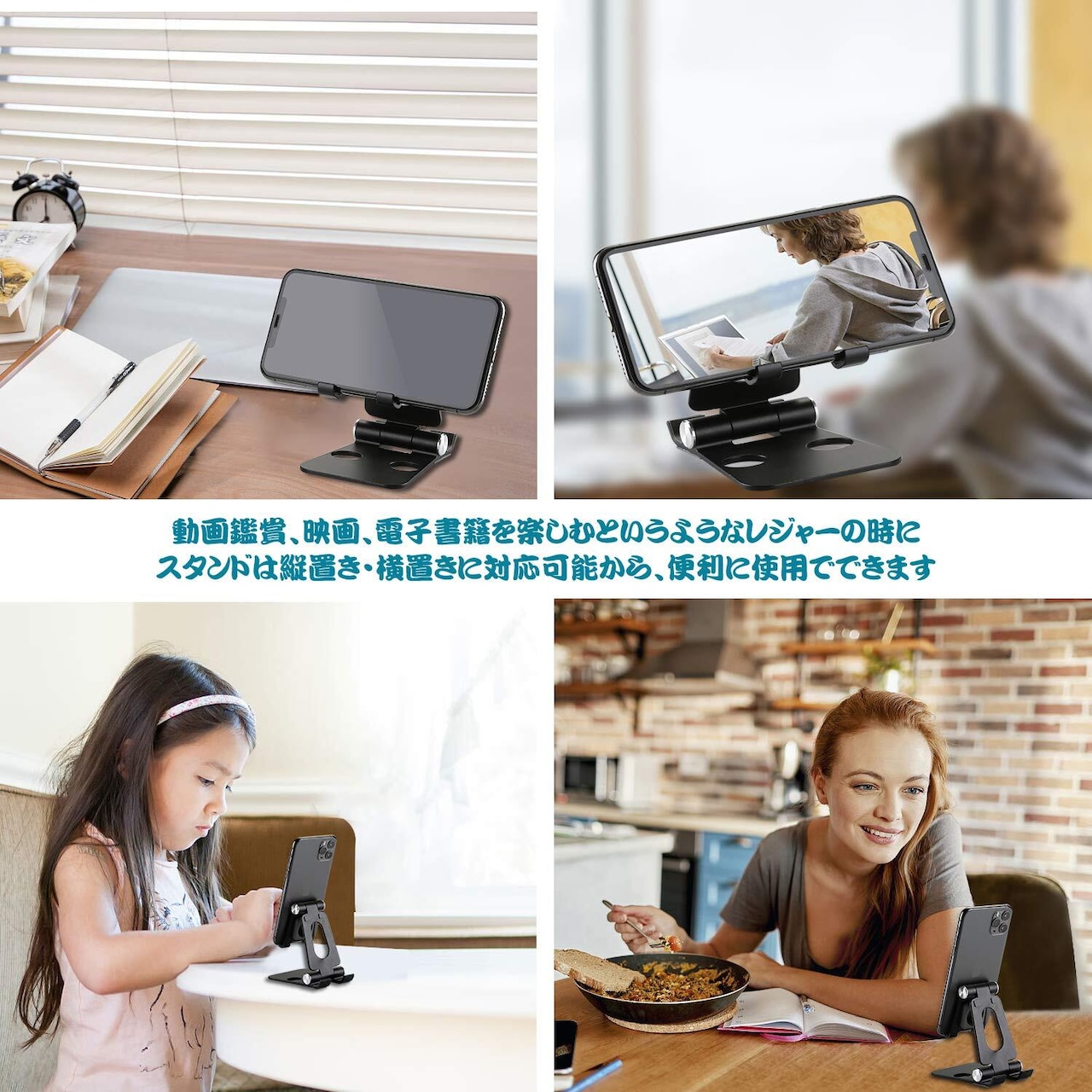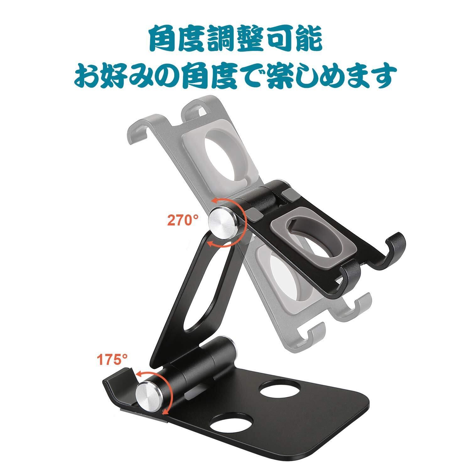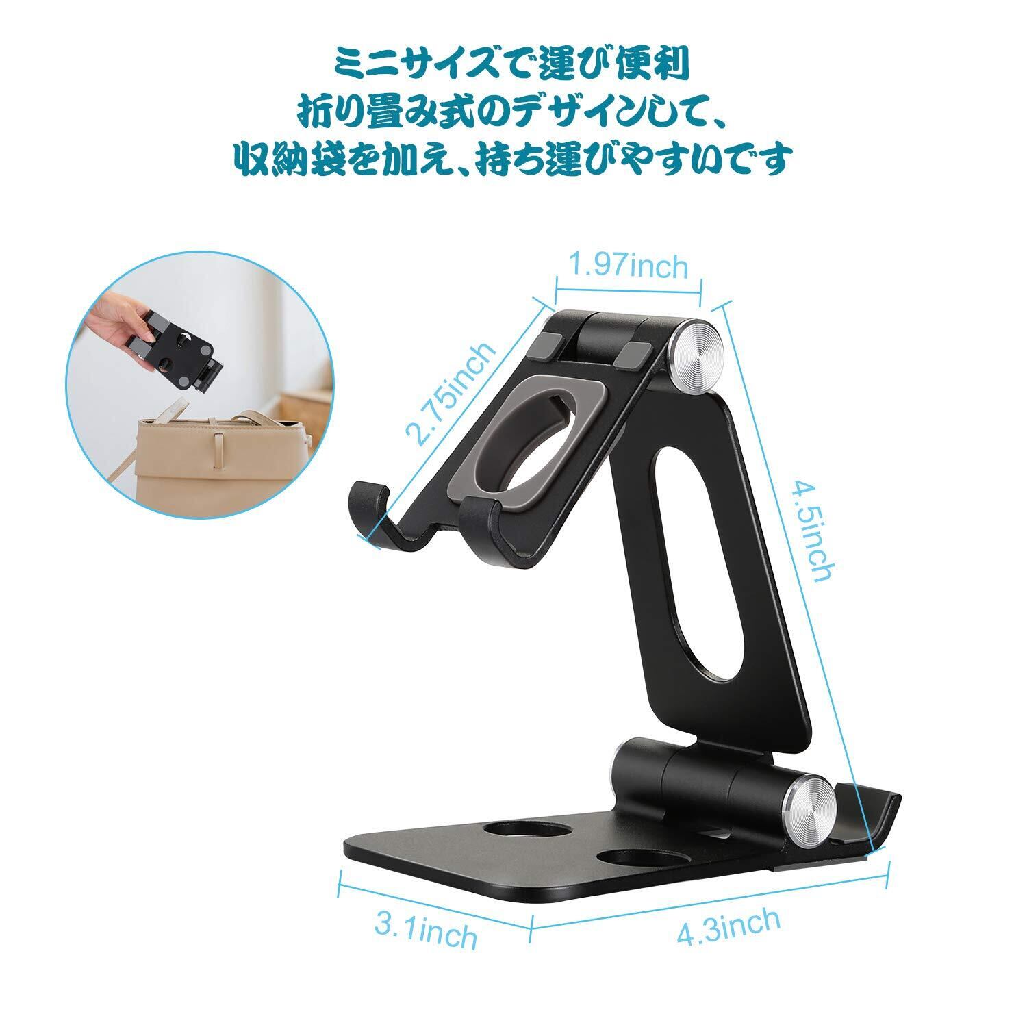 MYPIN スマホスタンド ホルダー角度と高さ調整可能なスタンド滑り止め折りたたみ式電話スタンド (ブラック)