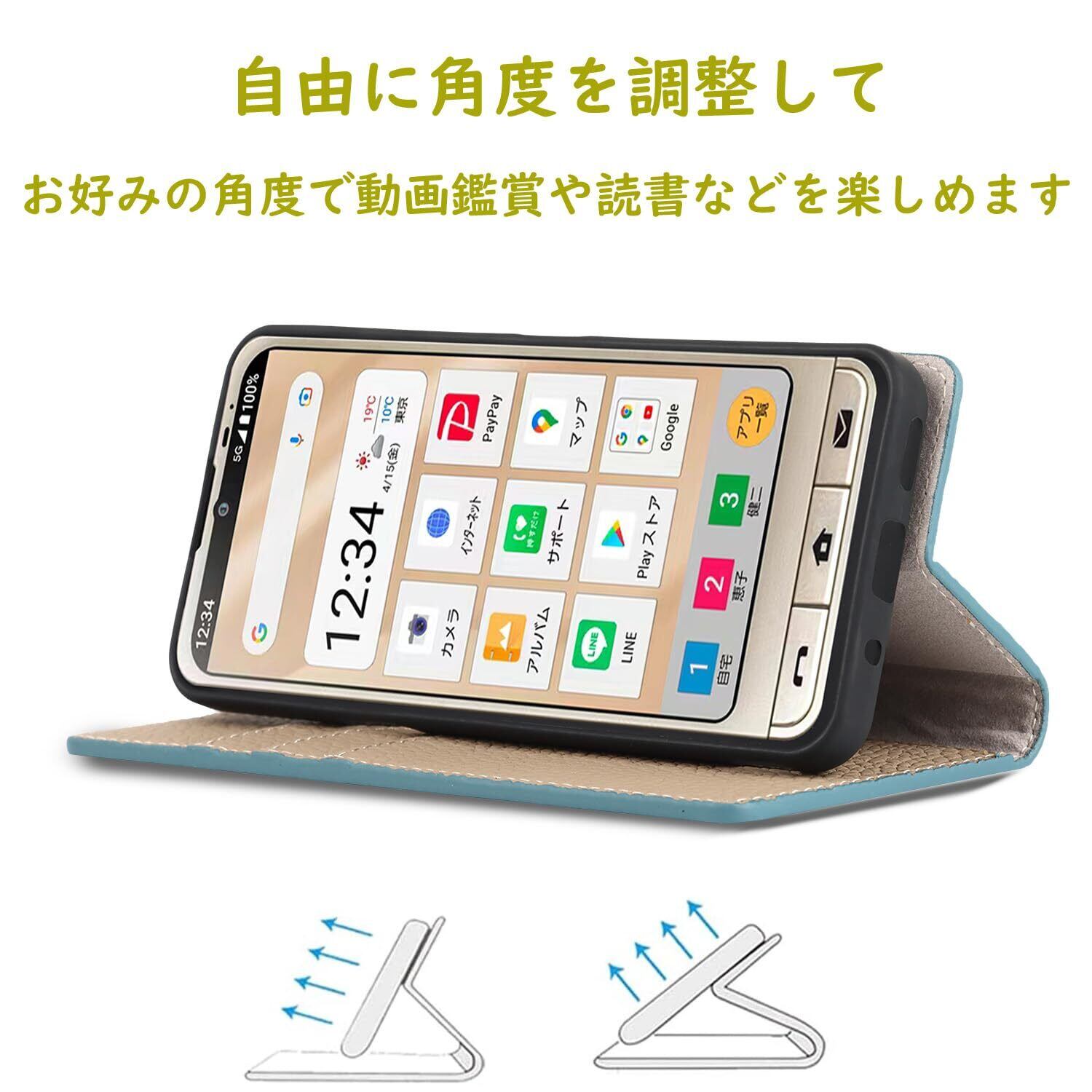 Havaya Basio active2 スマホケース ベイシオアクティブ2 ケース Basio active ケース 手帳型 本革 ストラップ au SHG12 SHG09 シンプルスマホ6 耐衝撃 A201SH docomo A404SH シャープ Sharp シンプルスマホ7 カバー SoftBank カード収納 スタンド機能 レザー-スカイブルー