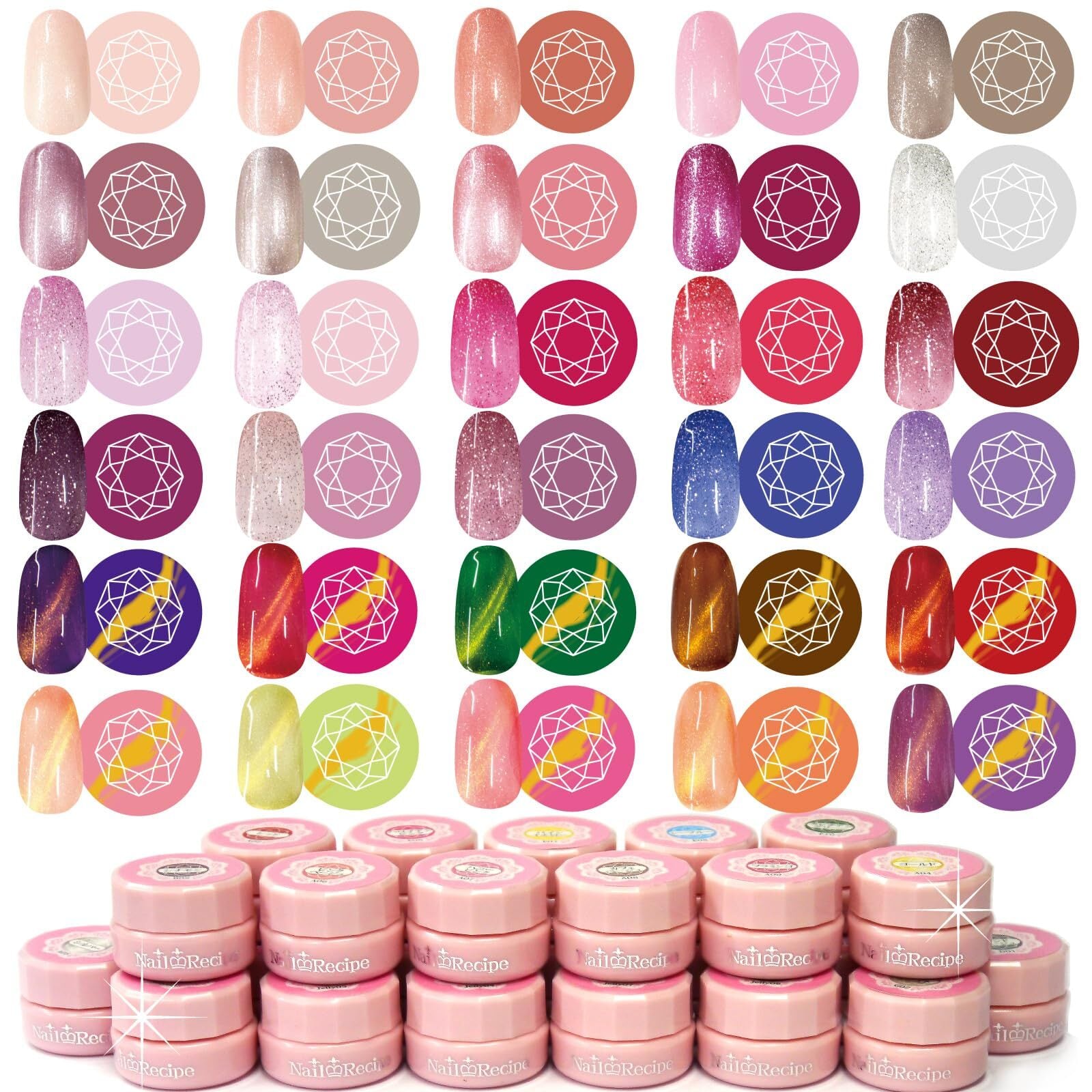 ネイルレシピ カラージェル キット 30色カラージェルセット ジェルネイル(ラメ&キャッツアイ)