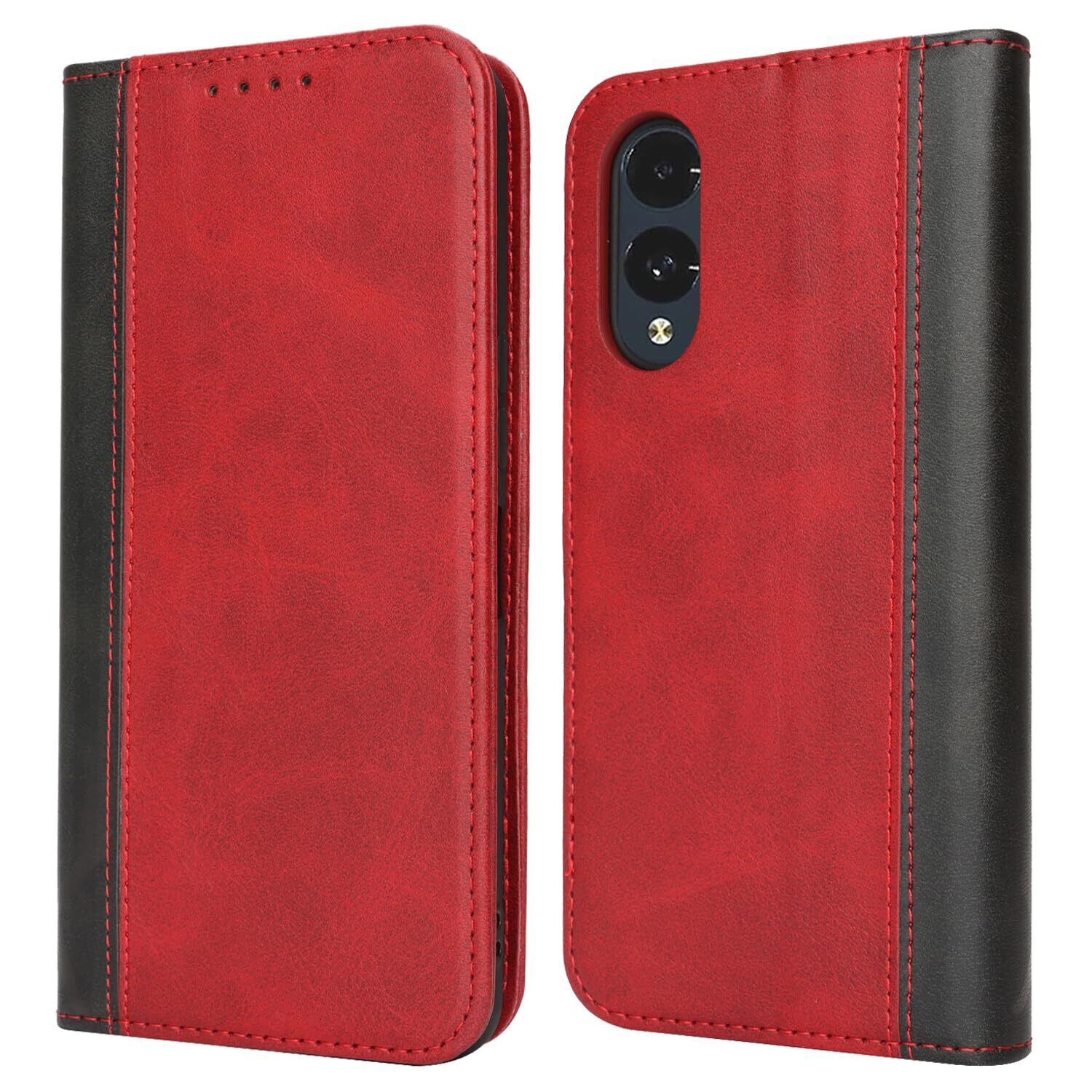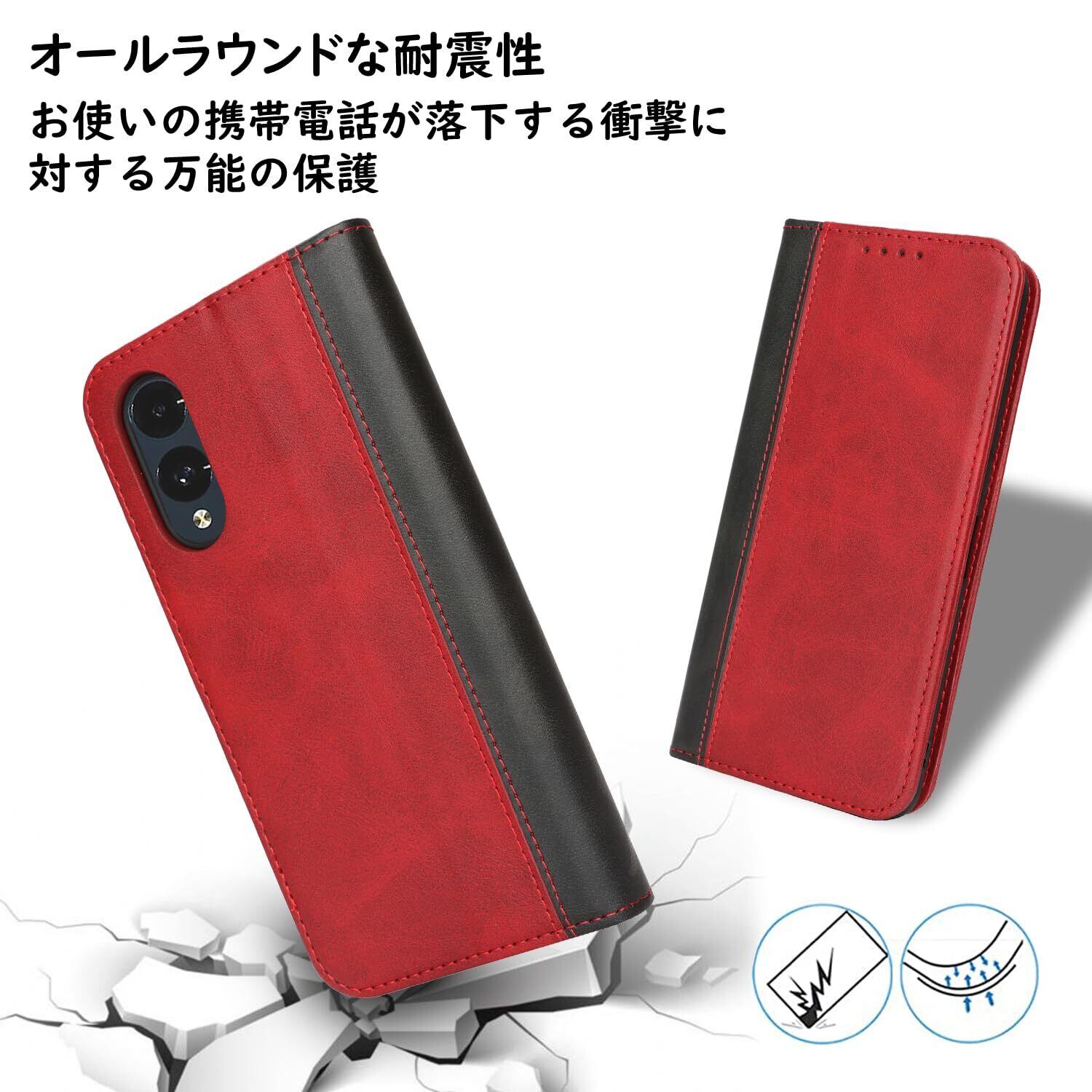 Havaya arrows We2 ケース アローズwe2ケース Fujitsu arrows We2 F-52E スマホケース FCG02 ケース docomo 手帳型 耐衝撃 カバー マグネット式 カード収納 スタンド機能 レザー-レッド+ブラック
