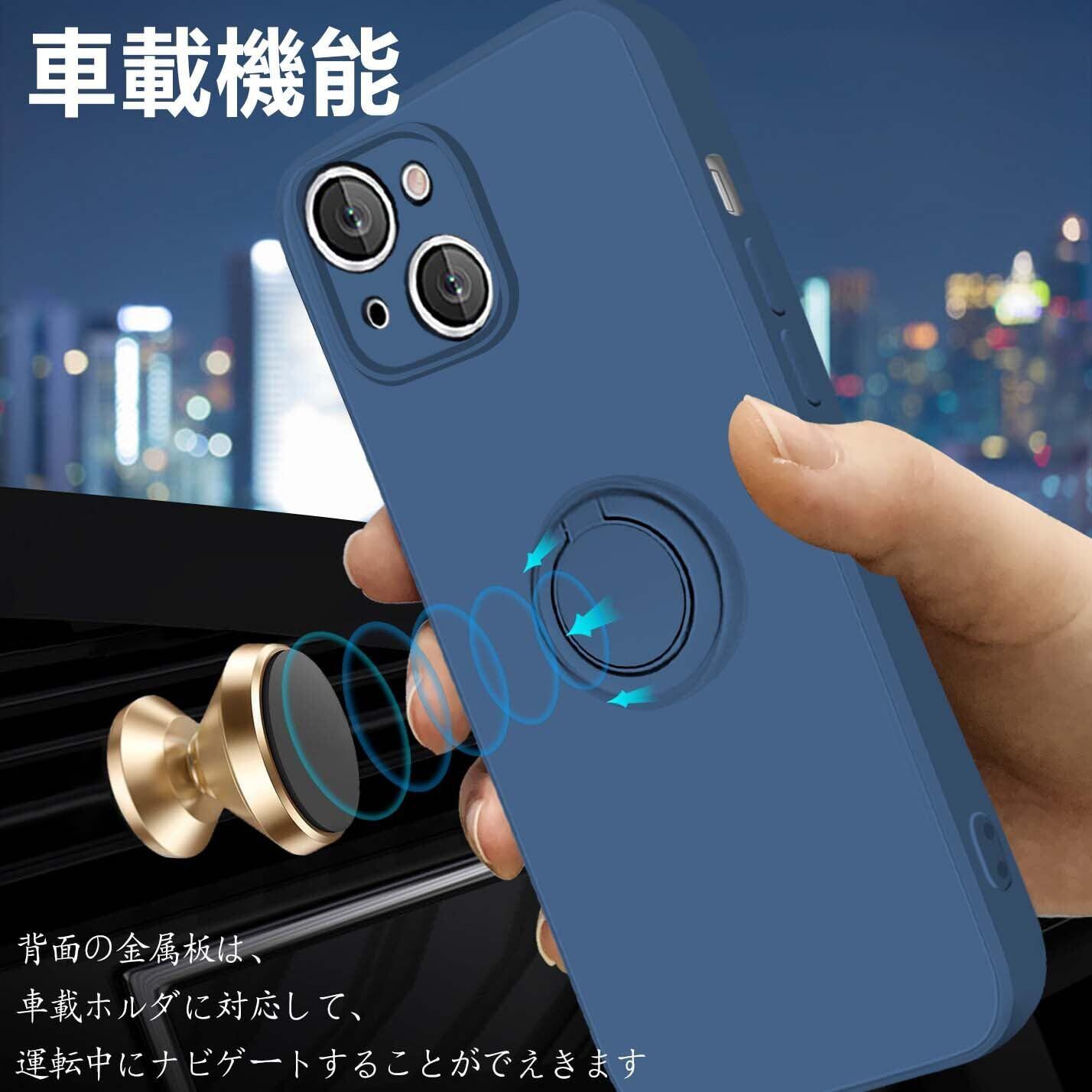 MiaoKeDa iPhone 13 mini ケース シリコーン リング 耐衝撃 スマホケース いpほね 13 mini リング付き TPU 車載ホルダー ストラップホール付き メッキ ブルー