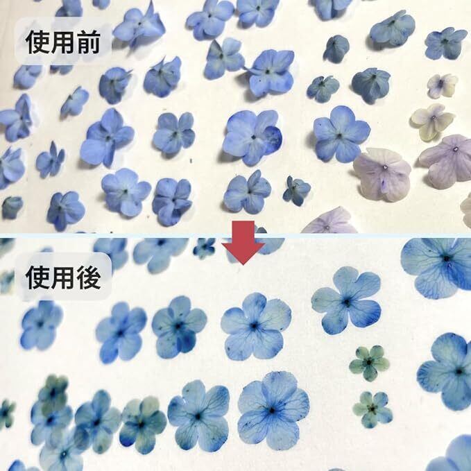 シートに関して:そのまま使える押し花乾燥シートには乾燥剤成分は含まれておりません。代わりに紙自体に高い吸水性と剥離性を備えており、再利用も可能な構造で製造しております。その構造のおかげで一般的な乾燥シートと異なり、クッションシートを使用せず簡単に押し花を作成することが可能です。
