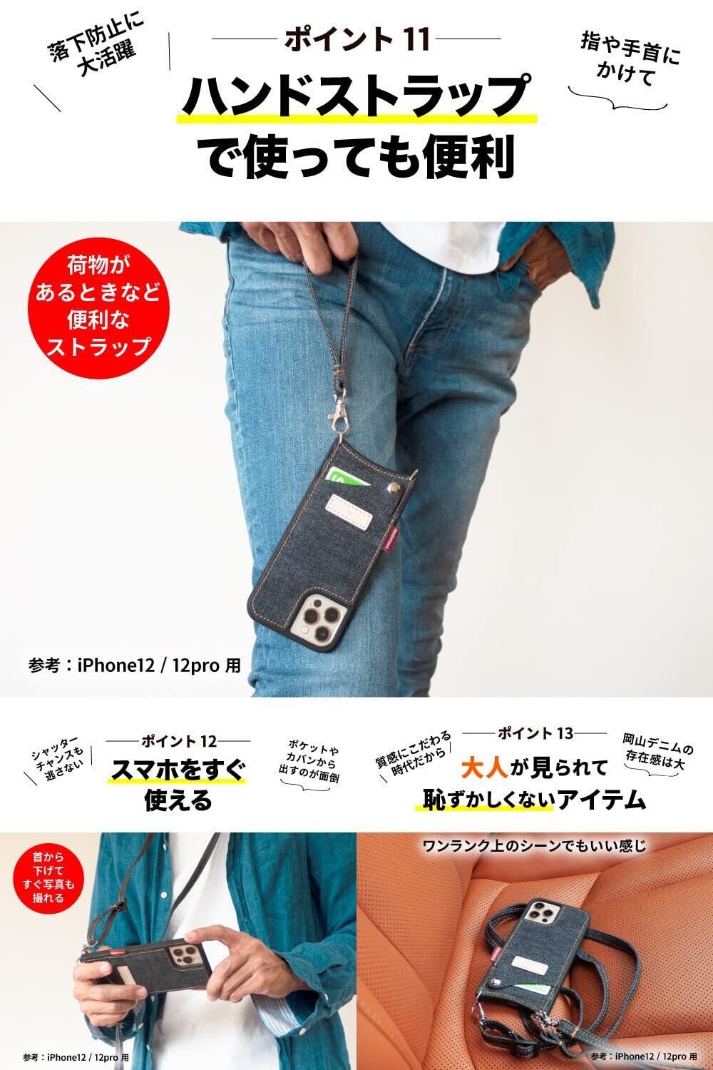 NeedNetwork 岡山デニム iPhone11 用 スマホ ケース ショルダー ショルダー付き カード入れ ショルダータイプ スマホショルダー スマホショルダーストラップ