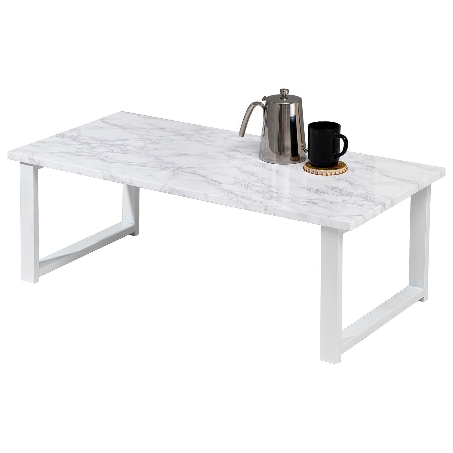 萩原(Hagihara) ローテーブル センターテーブル テーブル 机 【大理石調天板×スチール脚】 シック モダン リビング ソファテーブル 幅90 奥行45 高さ32 ホワイト 白 頑丈 LT-4394MWH