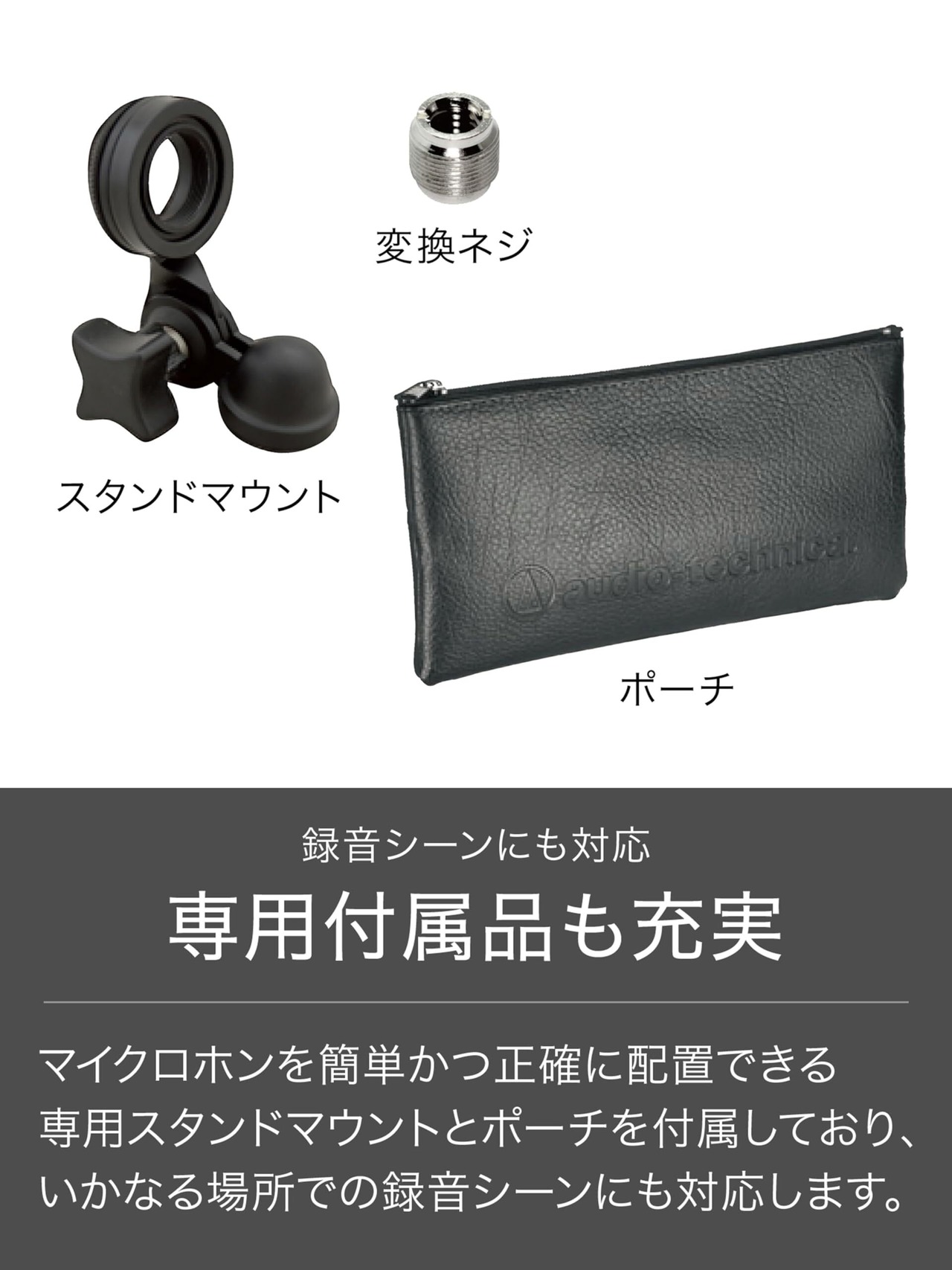 ●付属品:専用スタンドマウント、マイクポーチ、変換ネジ