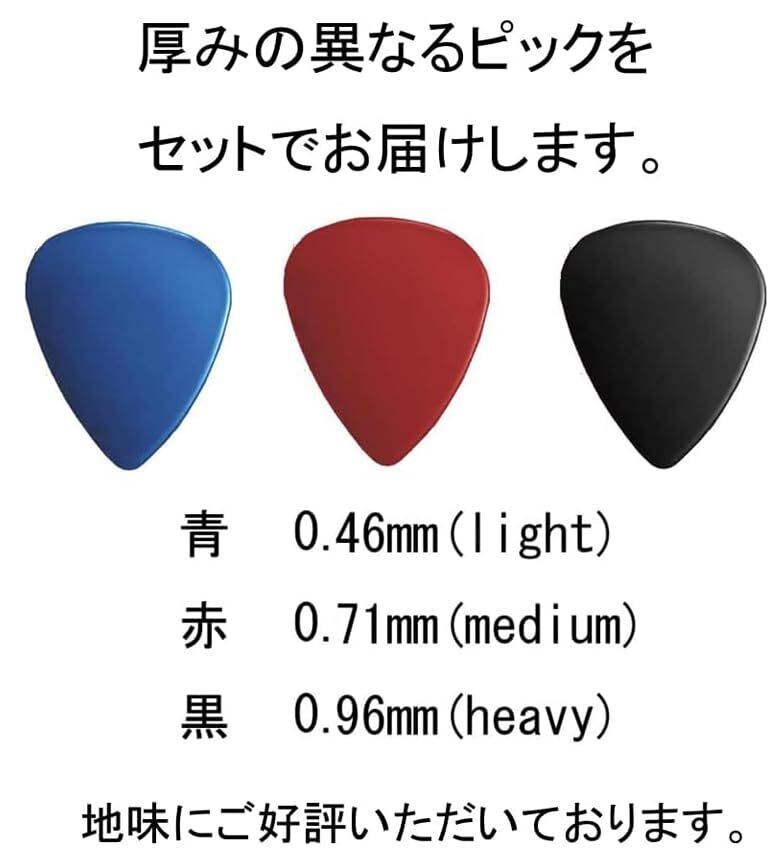 3種の厚みのピックが各2枚(計6枚)セットになります。