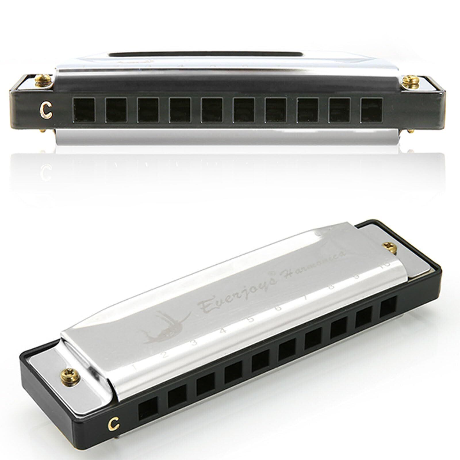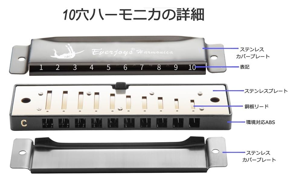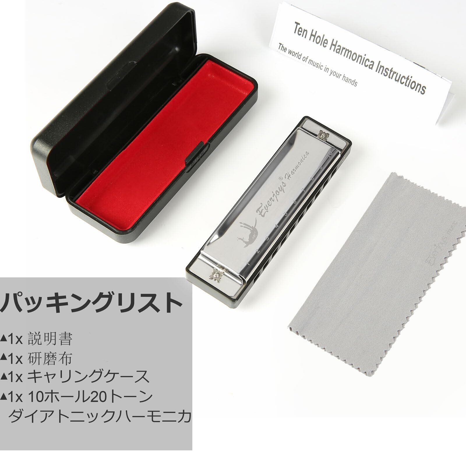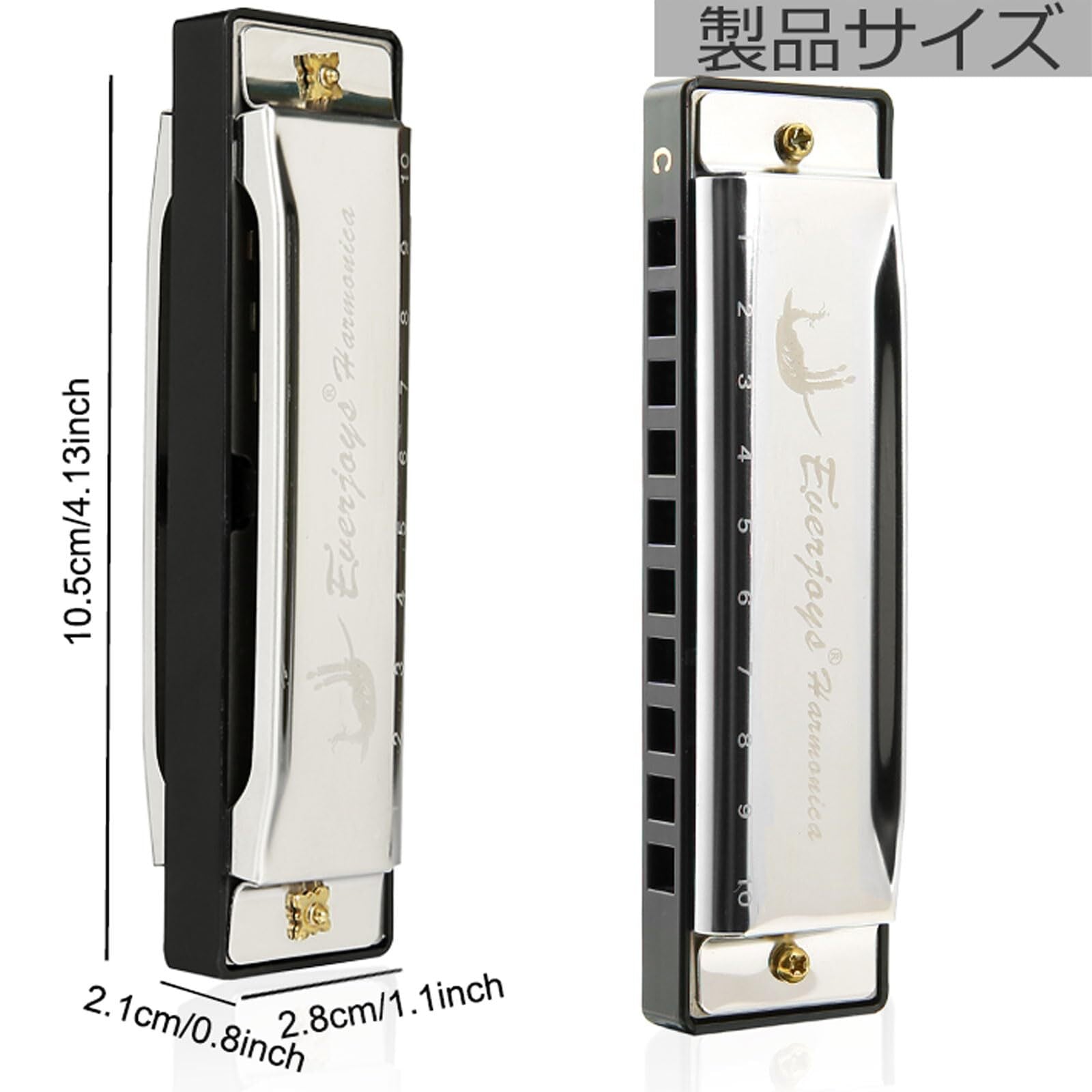 EVERJOYS ダイアトニックハーモニカ 10ホール ブルースハープ ケース、ポリッシングクロス、教則付 C調(スライバーカラー)