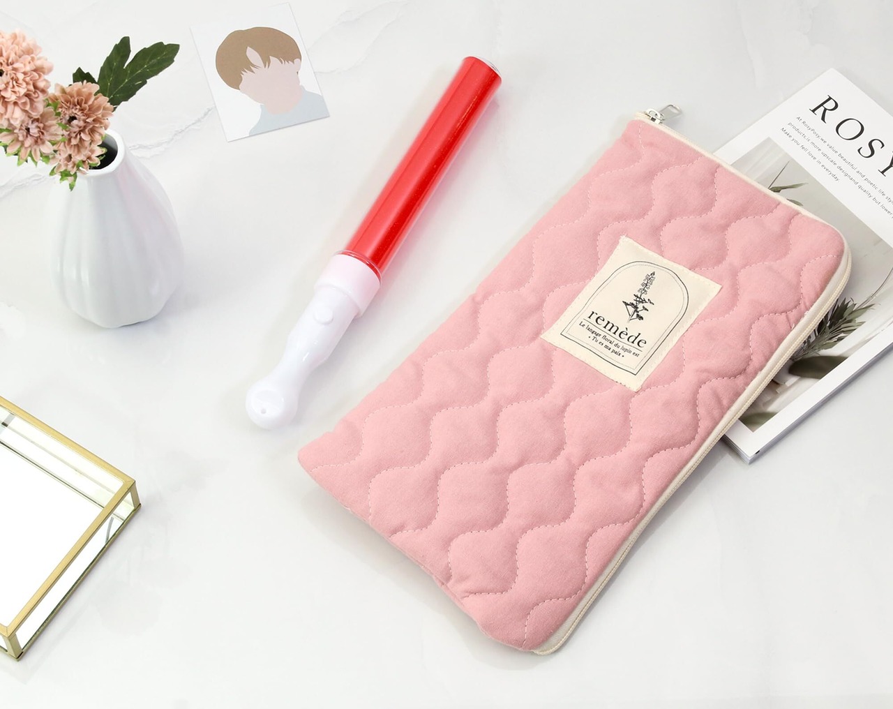 不二貿易 推し活グッズ ペンライトケース ペンラケース 幅16×奥行1×高さ30cm ピンク キルティング 推し活 収納 メンカラ 推しカラー 内ポケット付き remede ルメッド 53926 18753