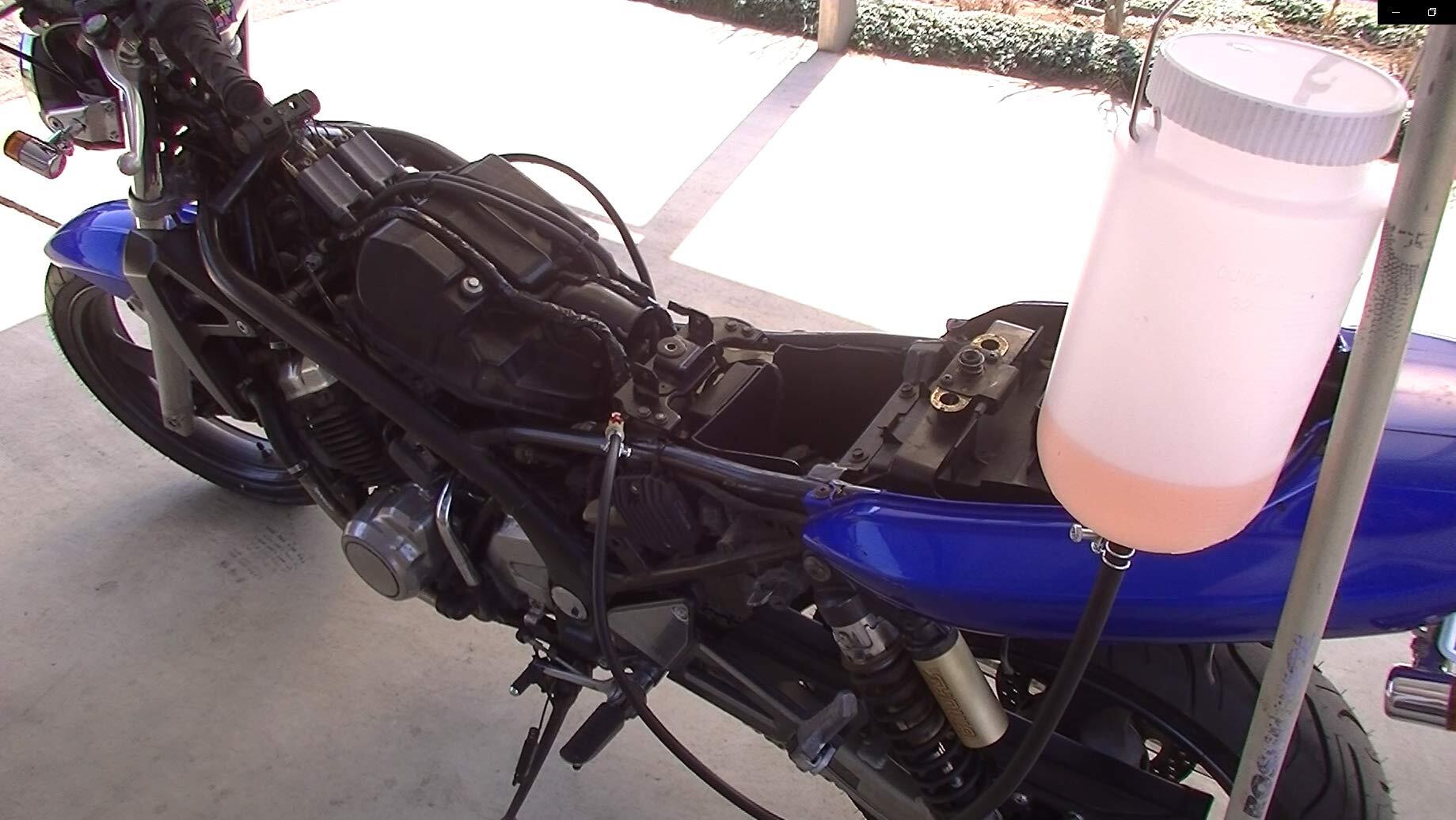 バイク整備に大変重宝するガソリン対応の予備タンク(リザーバータンク)