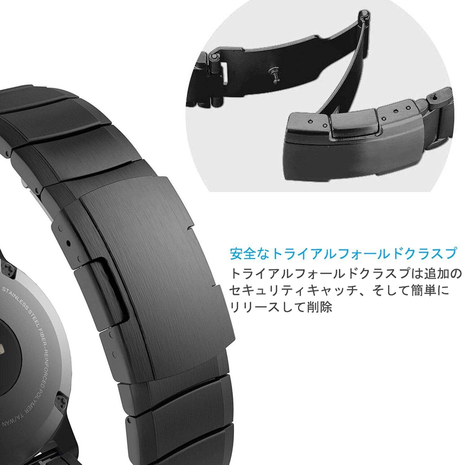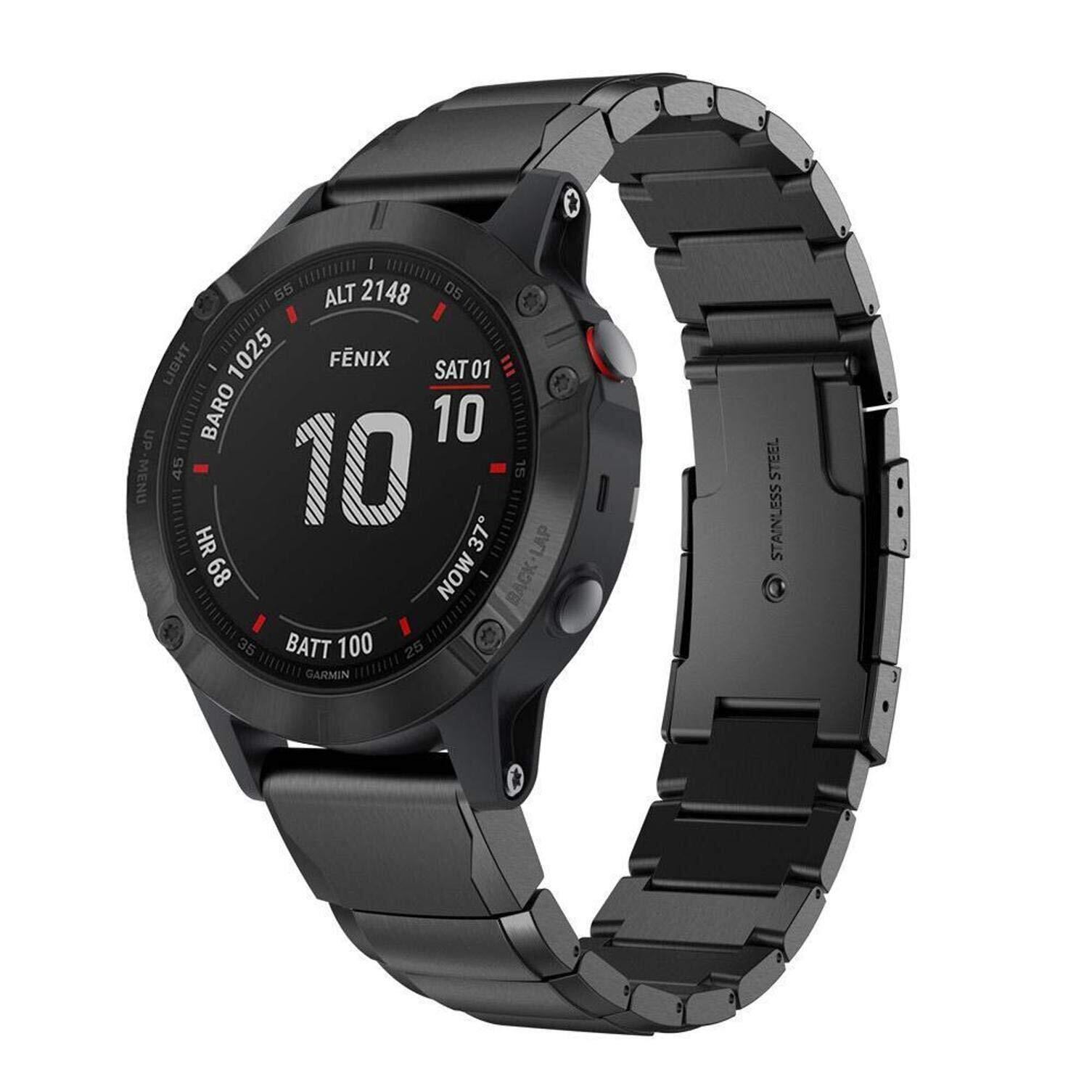 [Ahayo] QuickFit 22mm ステンレス留め金製 バンドビジネス のあるストラップ for GARMIN(ガーミン) Fenix 7 Solar/Fenix 6 / Fenix 5 / Instinct/EPIX 2 / Approach S62 用(フルブラック)