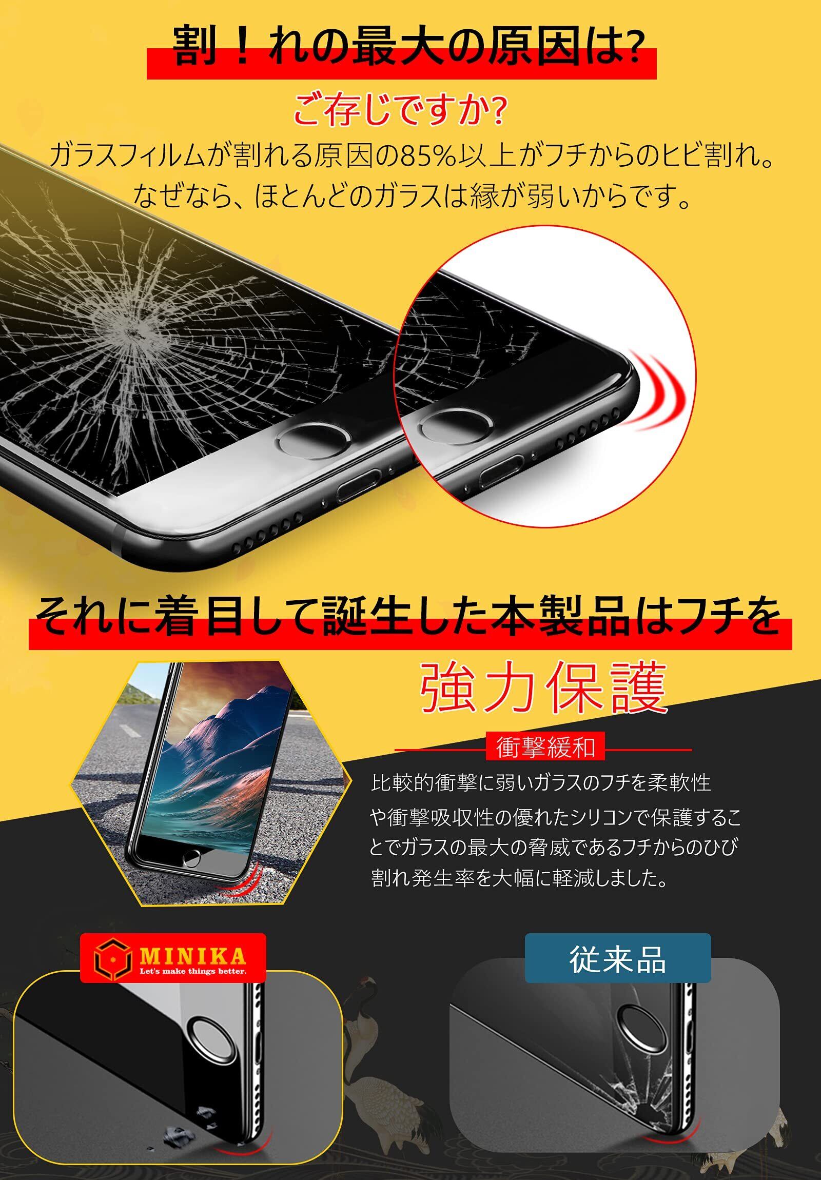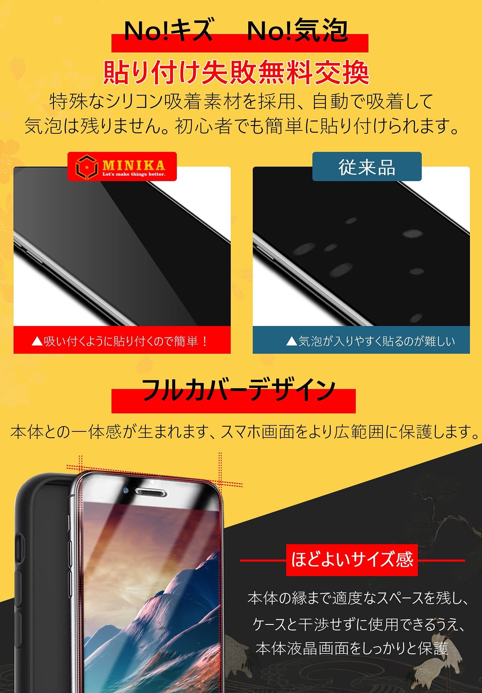 【高硬度、保護力3倍Up】MINIKAのいphoneSE2 強化ガラスフィルム 一般的な製品に比べ3倍以上の保護力があり、画面の破損を最低限まで抑え、衝撃を受けても割れにくい。優れた耐スクラッチ性能:高硬度のフィルムが日常的なスクラッチから守り、傷を付きにくくします。