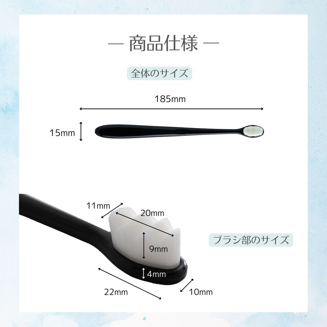 【歯ブラシの仕様】サイズ:185mm×12mm、カラー:白、黒、緑、ピンク