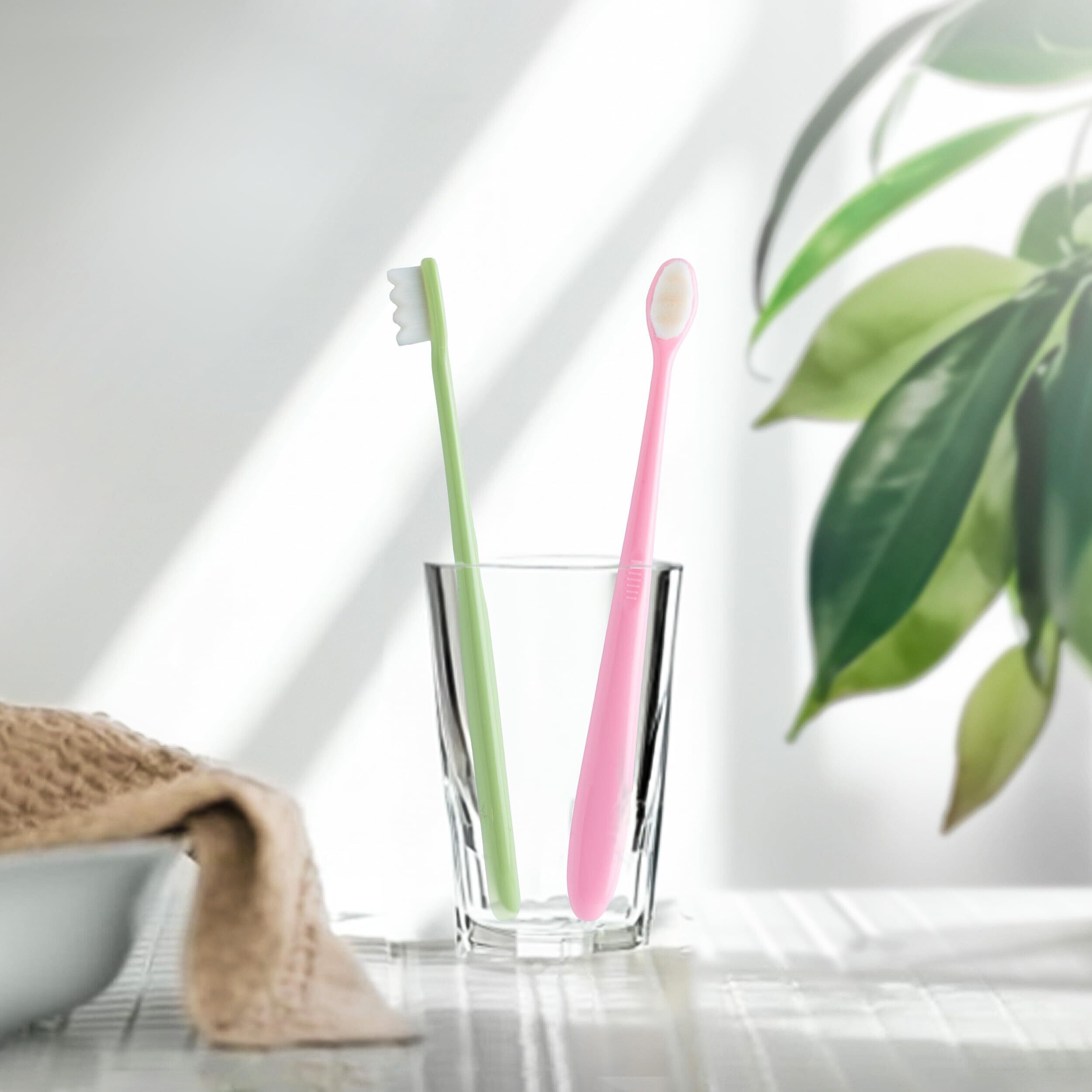 ナノ歯ブラシ やわらかめ 6本セット 【歯茎に優しい極細ナノ歯ブラシ】 超極細毛 歯ブラシ 歯ブラシセット 大人用 子ども用 家庭用 (白/ピンク/緑)