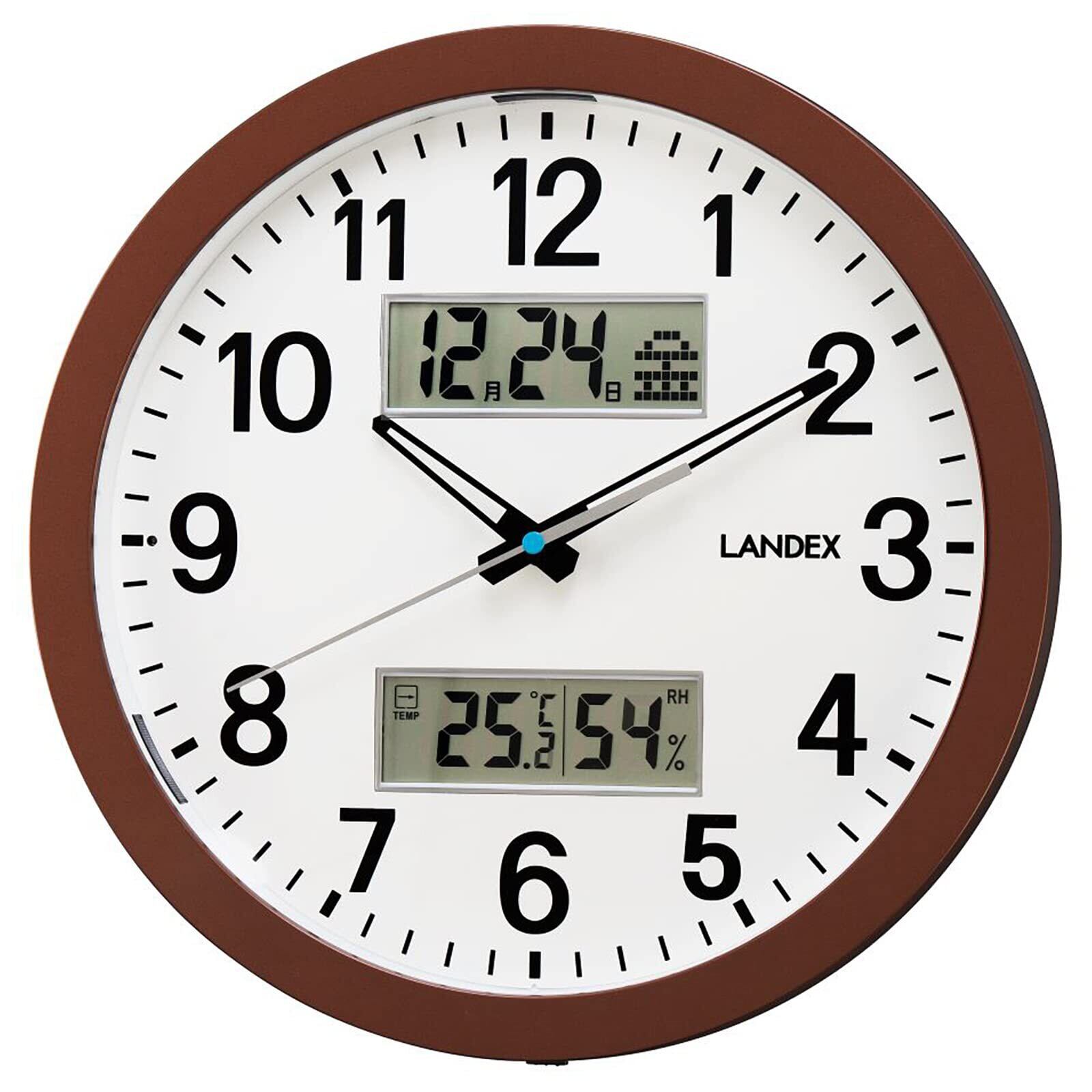 ランデックス(Landex) 掛け時計 アナログ ディアデイズ ライト付き 自動点灯 静音 連続秒針 温度 湿度 表示 ダークブラウン YW9178DBR
