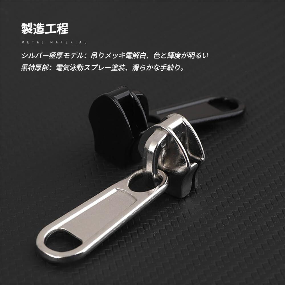 【サイズ多くのジッパーヘッド】シルバー3#、5#、8# 各2本、ブラック3#、5#、8# 各2本、合計12本。