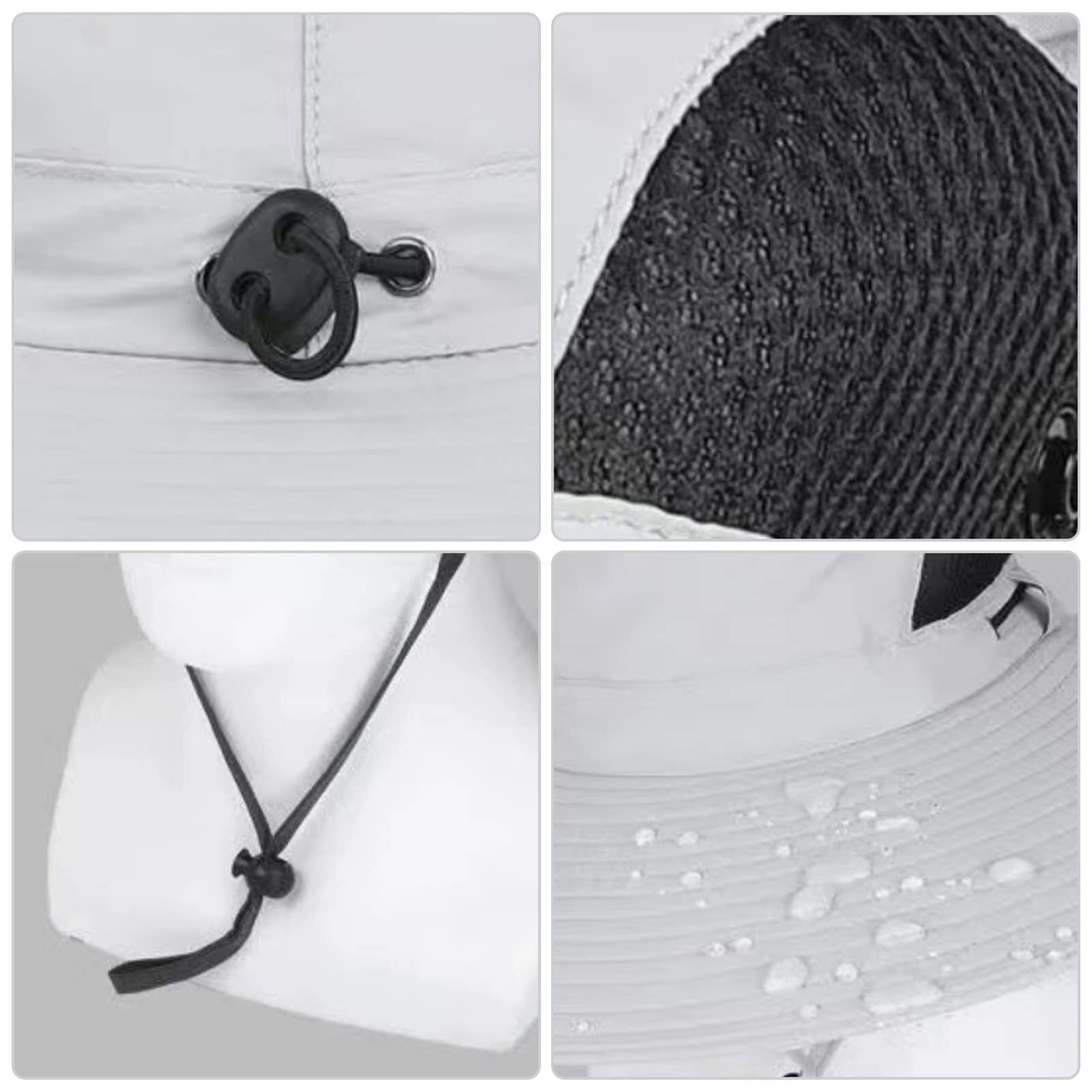 【3つ着用スタイル】帽子は3つの部分に分けて、自由に組み立て使用できますようになりました。①ヘッド部分を覆って普通のサファリハットとして被る。②左右両端のパットを出して日よけ防止の帽子ついて被る。③フロント部分を出して顔周りも日よけ帽子の帽子として被る。折りたたみ式でとても収納便利です!