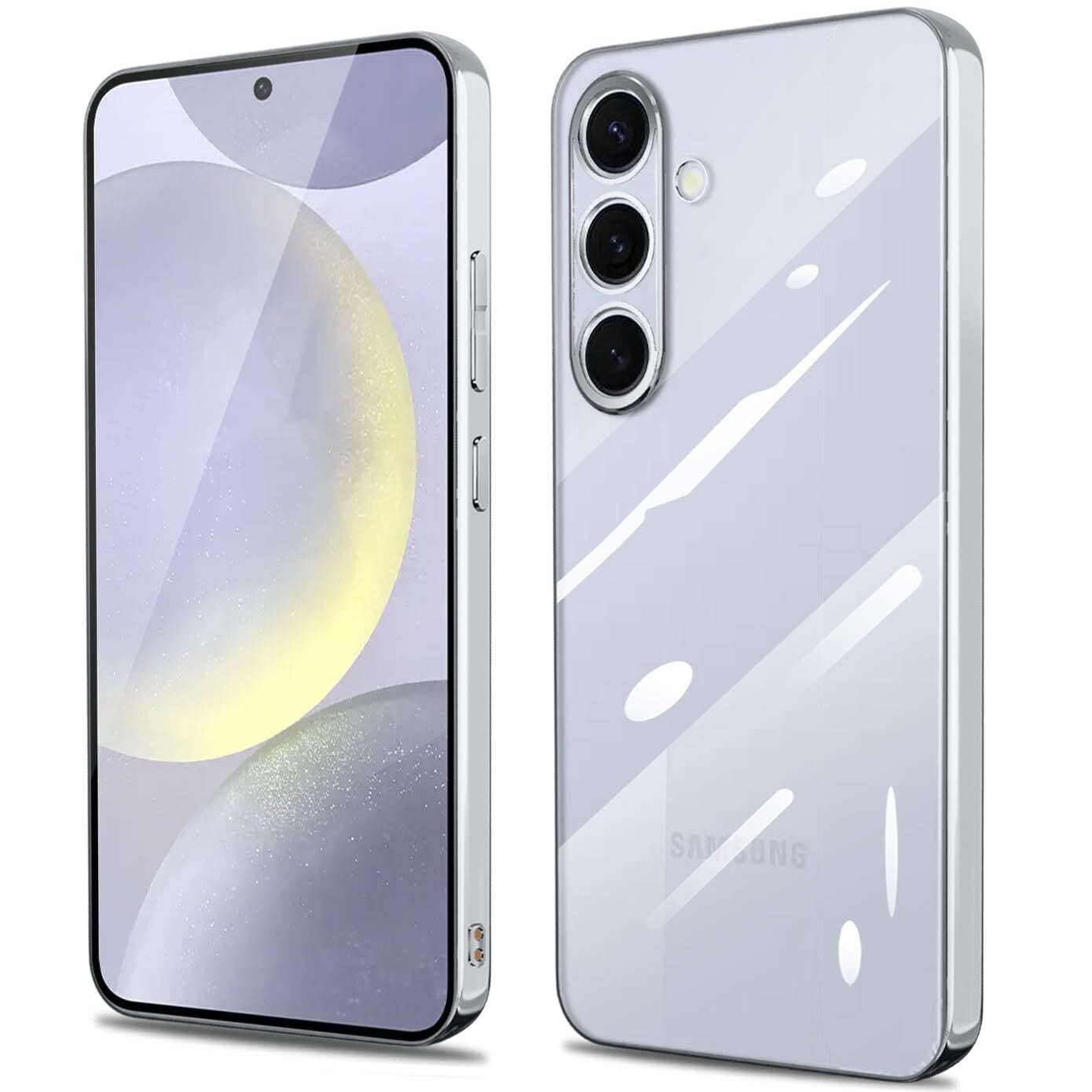 Galaxy S24 ケース クリア 銀 ギャラクシーs24 SC-51E SCG25 カバー 透明 耐衝撃 軽量 薄型 tpu 背面クリア 銀縁 メッキ加工 スマホケース ソフト ストラップホール付き ワイヤレス充電対応(galaxyS24, シルバー)