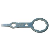 <レンチ(大)>は、⑤ボックスコネクタのロックナットの取り付け、⑥絶縁ブッシングの締め付け にお使いいただけます。様々なサイズのロックナットや絶縁ブッシングに対応しているため、確実に取り付けることができます。